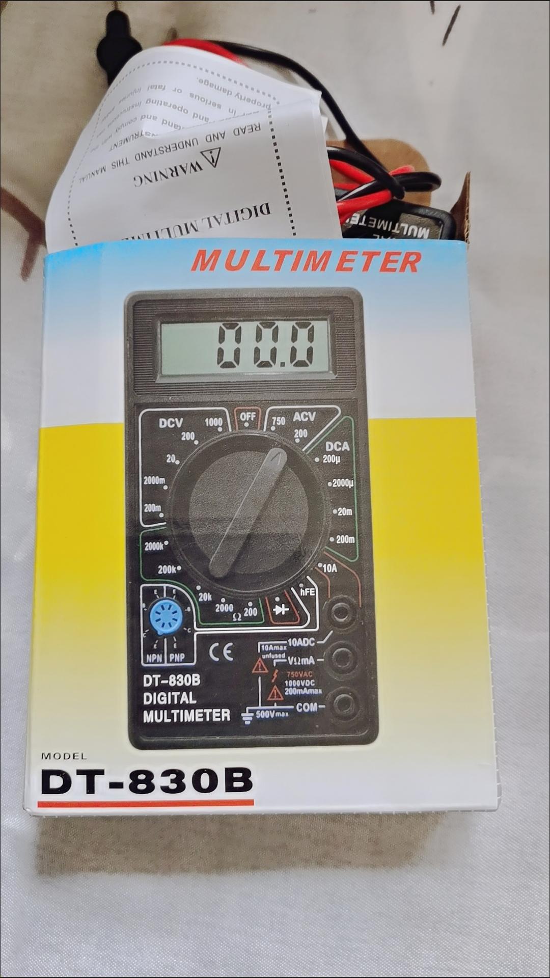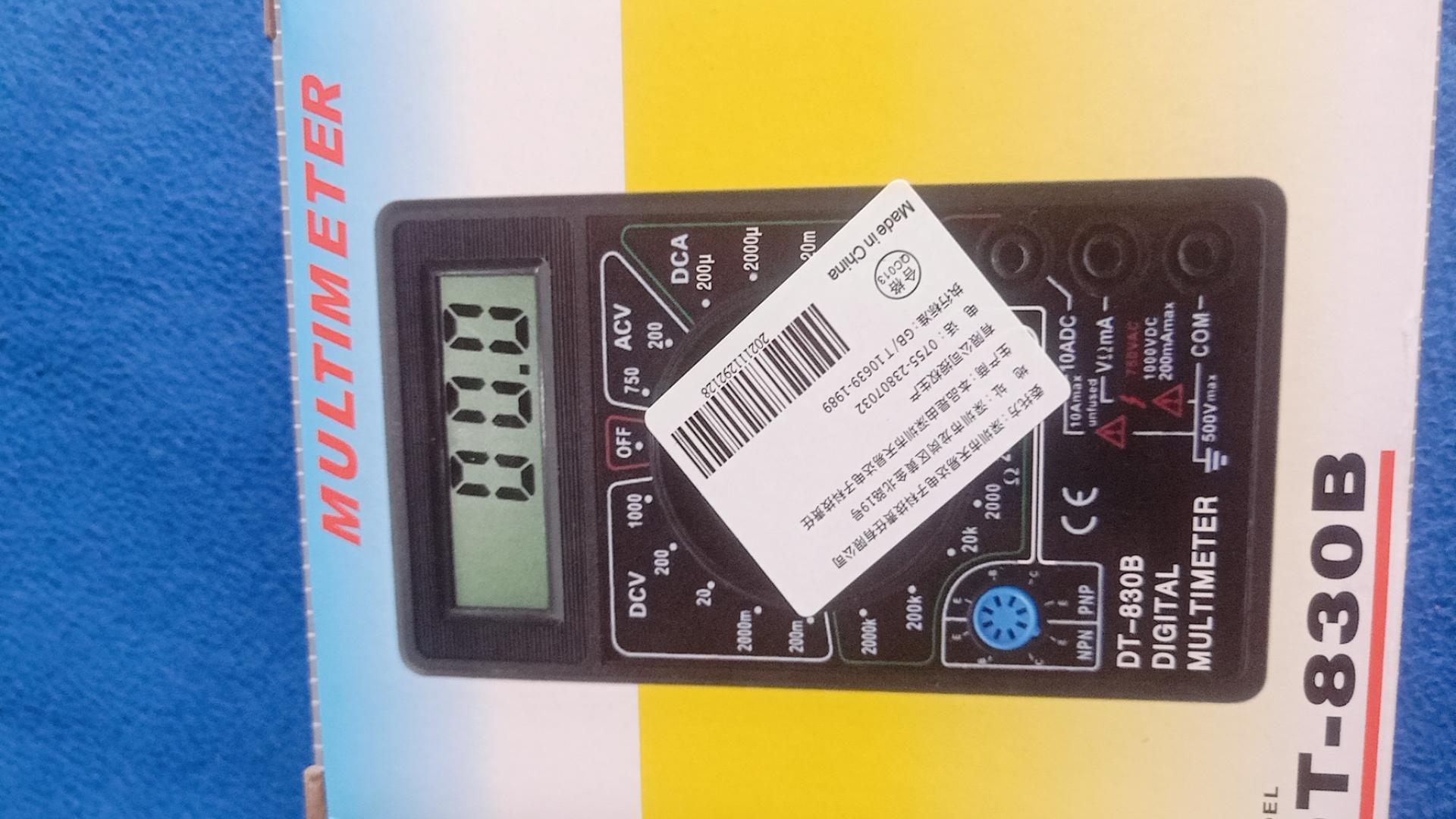 DT830B万用表收到,测试一下蓄电池电压,与实际电压相差0、2V,这个价格也就这样了。还是给好评吧。嗯