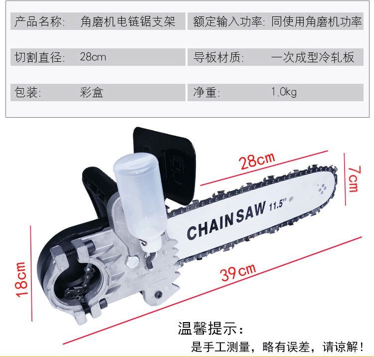 electric chain saw logging saw small multi-function woodworking electric angle grinder grinder modified electric saw bracket 100 type angle grinder [11.5 inch chain one