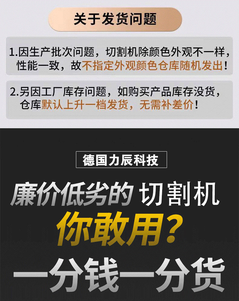 切割机己收到,物流很快,服务很好,等用后再评质量,订单不是7800瓦,发来的2680瓦。不大一样的功率吧?先给五星好评。等用后再追平。