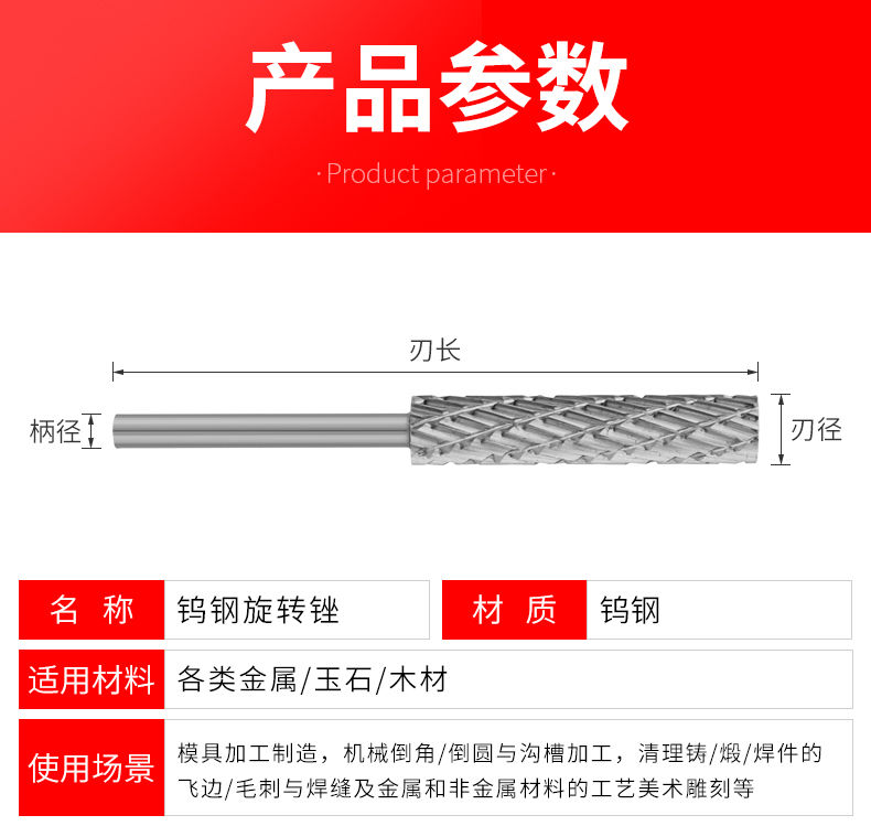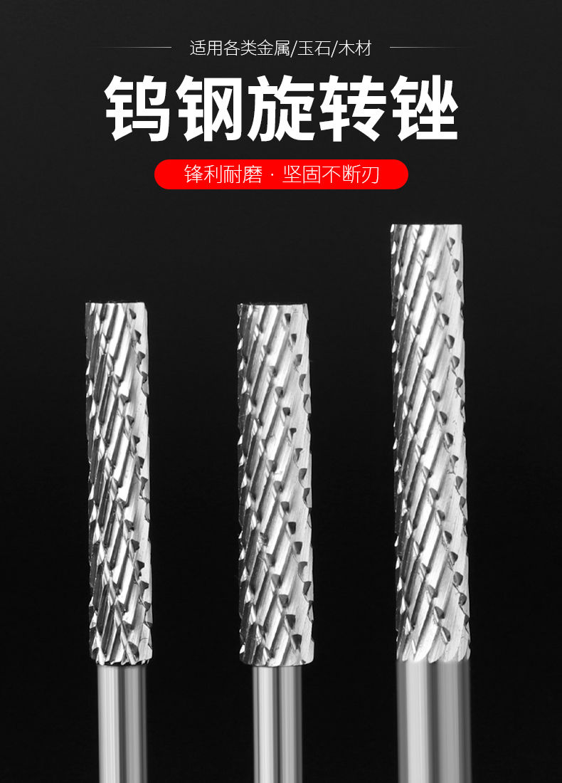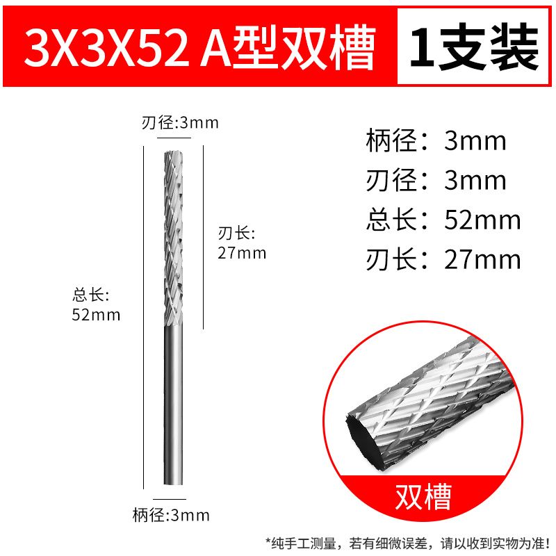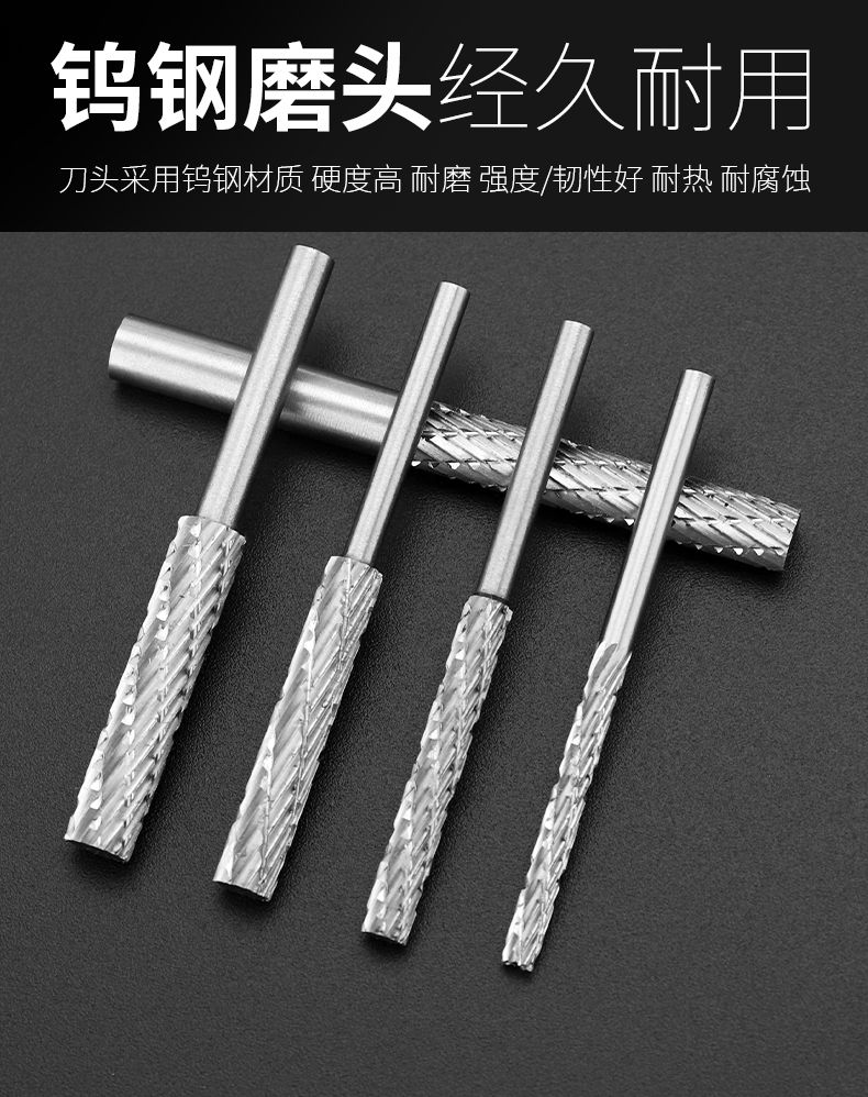 carbide rotary file lengthened tungsten steel grinding head corn milling cutter rotary file electric grinding head thickened woodworking tool double groove 3 *3*52