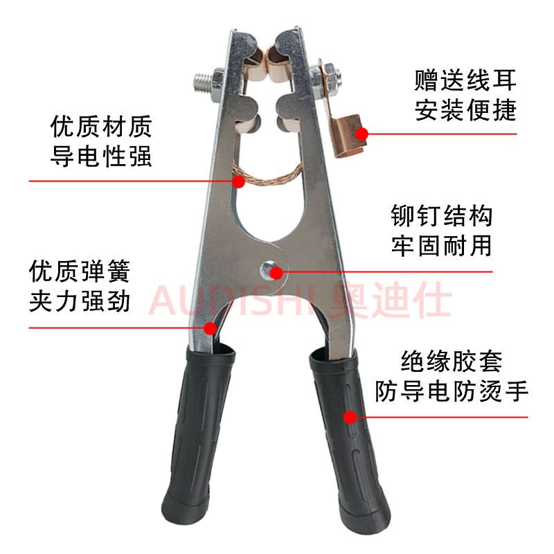 大功率电焊能用,不会烧坏夹子弹簧,夹得很紧,比以前焊上搭铁方便多了