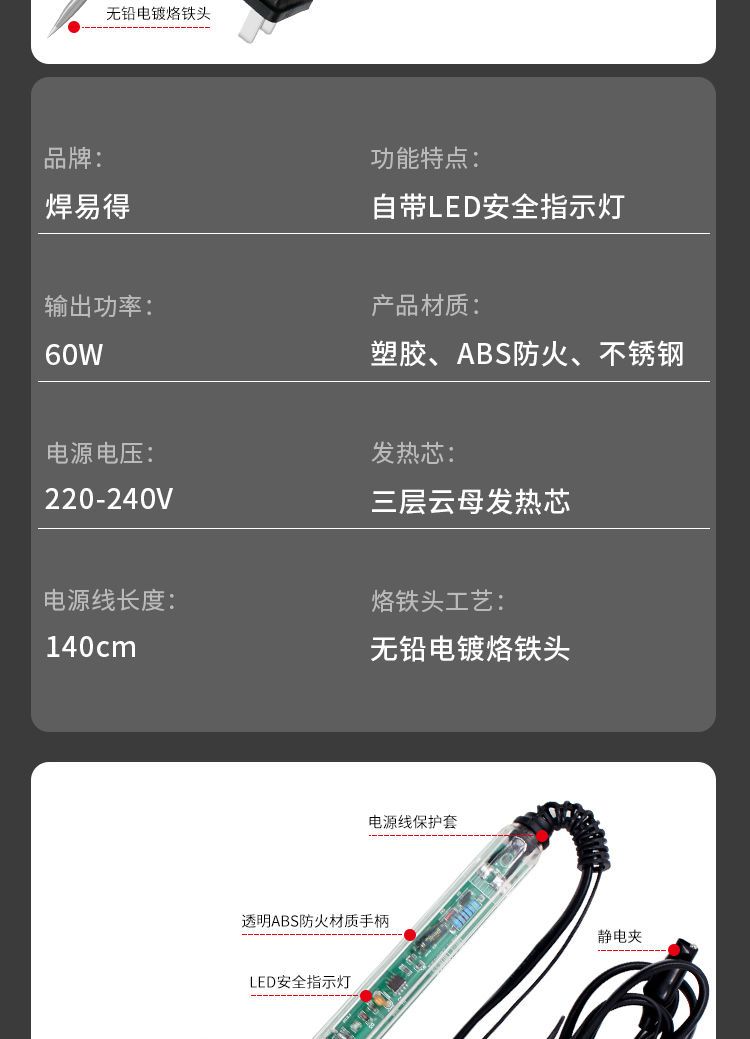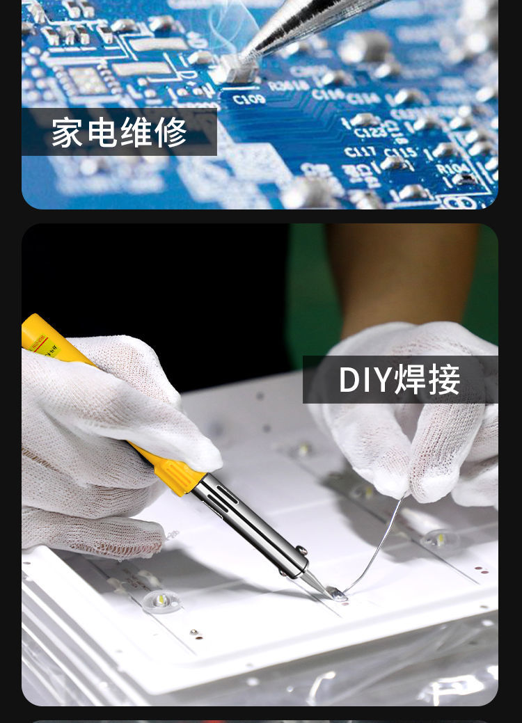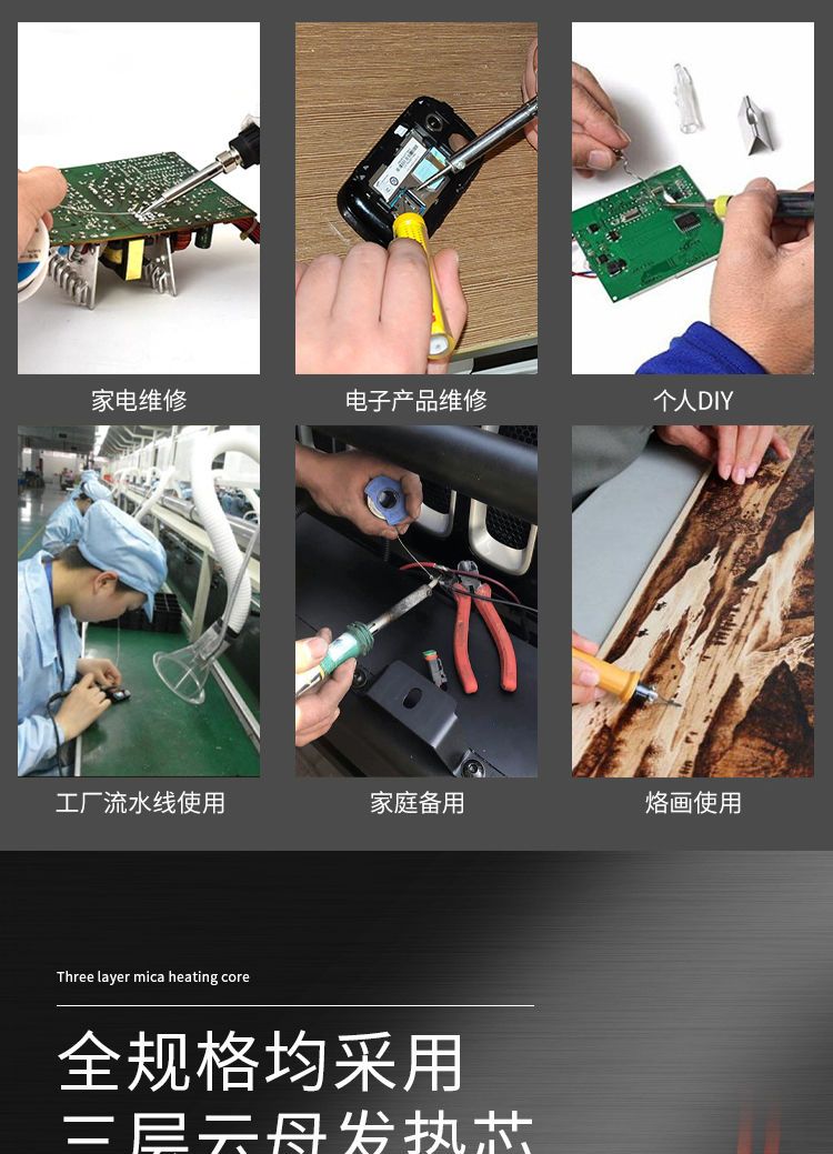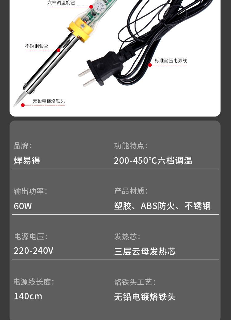 发货快,包装好升温发热快焊接牢固做工精致,质量很好,实物与图片一致,外观设计好,是日常生活中焊接小物件的必备工具。