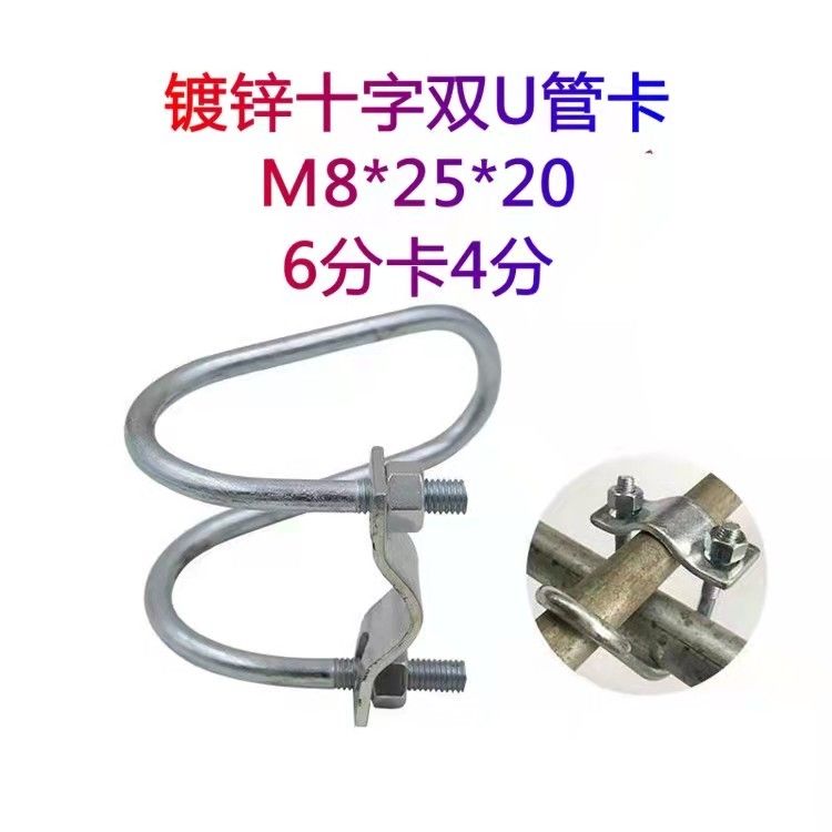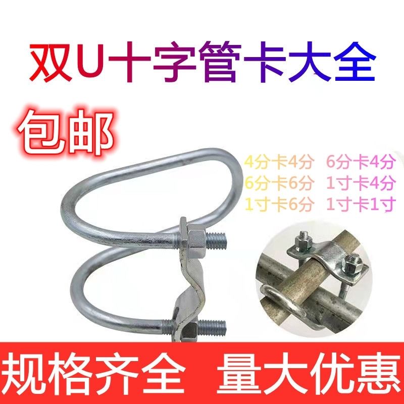 iron pipe clamp cross pipe clamp /greenhouse double U pipe clamp /vegetable greenhouse fixing clamp /U type fastener /if less than 10 pieces, please pay 5 yuan for shipping