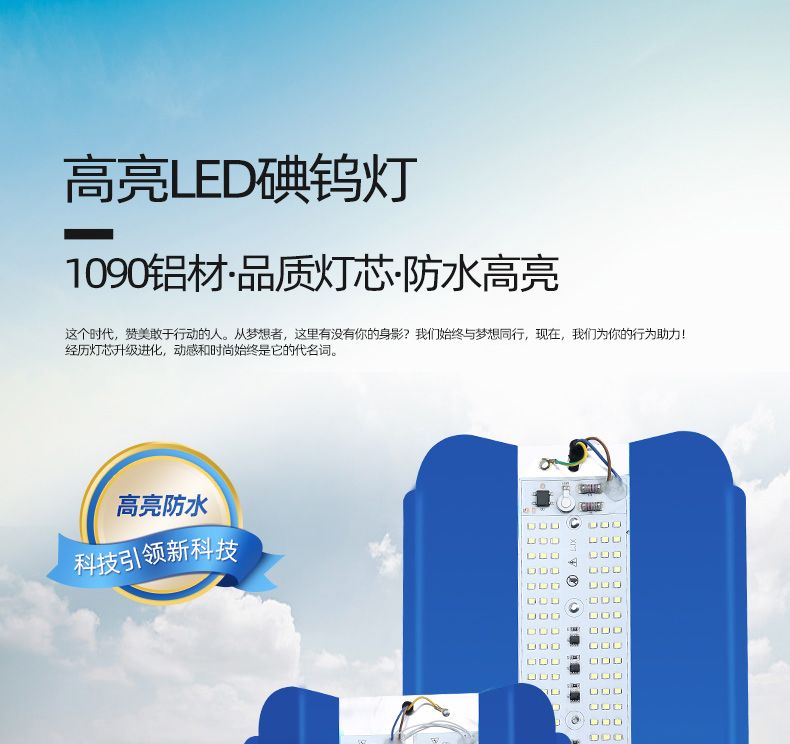 led iodine tungsten lamp work light 1000 w construction site lighting super bright floodlight waterproof solar lamp 50 w100w reserved line +50W super bright white light