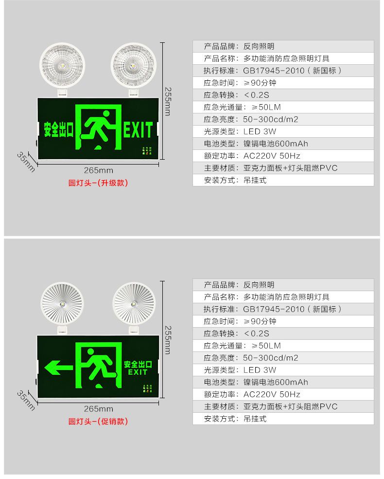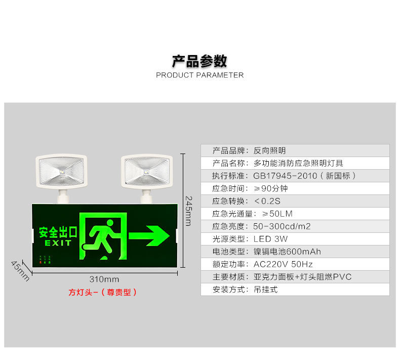 fire emergency light two in one dual purpose evacuation double head lighting led safety exit integrated indicator light multi-function integrated [forward]