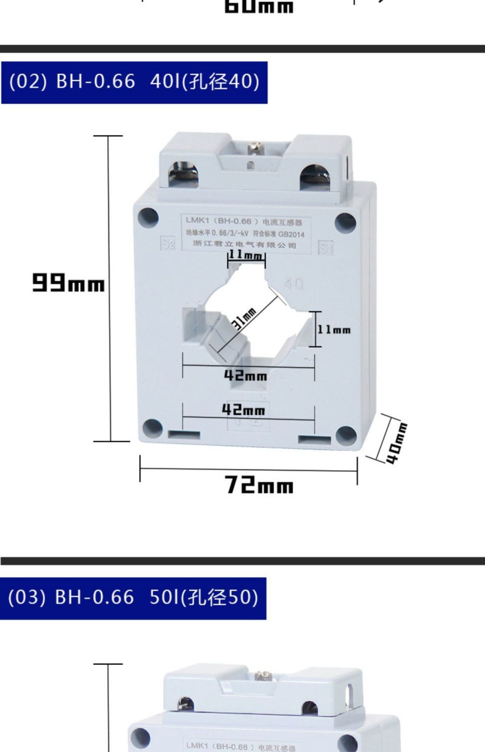 ac current transformer BH-0.66-CT 50/5 75/5 100 150/5 0.5grade precision copper wire Φ30+10/5