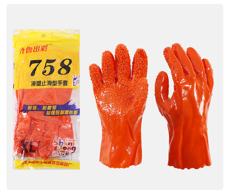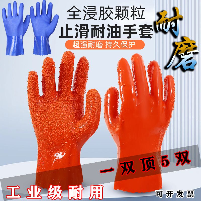 fully dipped rubber thickened gloves construction site labor protection waterproof rubber wear-resistant non-slip oil-resistant industrial gloves for killing fish with 758 orange particles non-slip XL thick +10pair