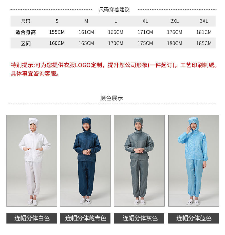 anti-static hooded split suit dust-free protection labor protection work anti-rock wool workshop dirt-resistant dust-proof unisex white [hooded top +pants】large tooth zipper +S