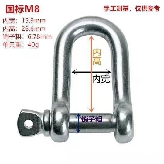 galvanized national standard shackle bow U heavy duty lifting hook american lifting hook D shaped ear buckle ring M8 national standard shackle (0.05 T)