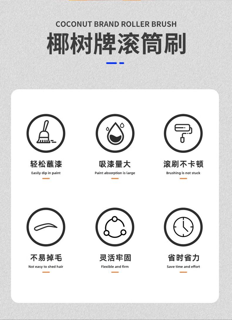 coconut tree long hair roller brush latex paint roller brush paint brush 6810 inch wall decoration wall roller roller paint 10 inch roller brush +1bundle