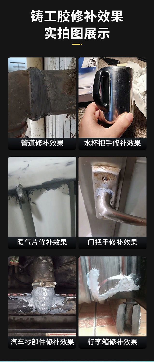 货收到几天了现在刚使用铸工胶粘结度强跟电焊一样坚固使用方便安全性能好