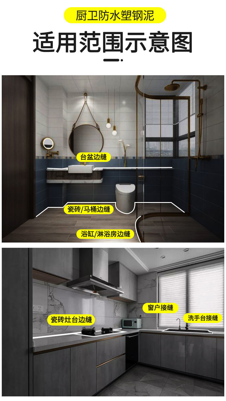 塑钢泥涂厨房卫生间非常好用,防水又防霉,今天对厨房进行施工。涂抹上了一圈,看效果非常防水,又白又亮。