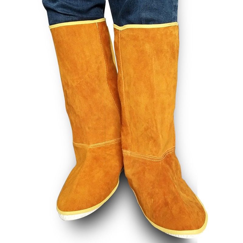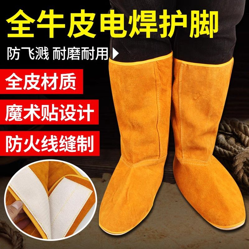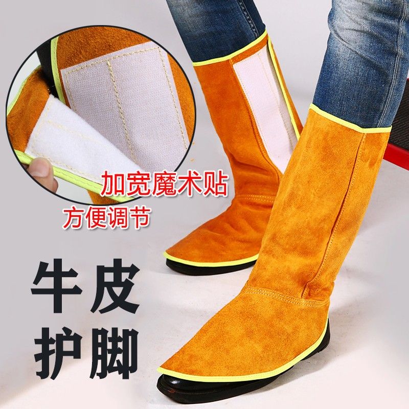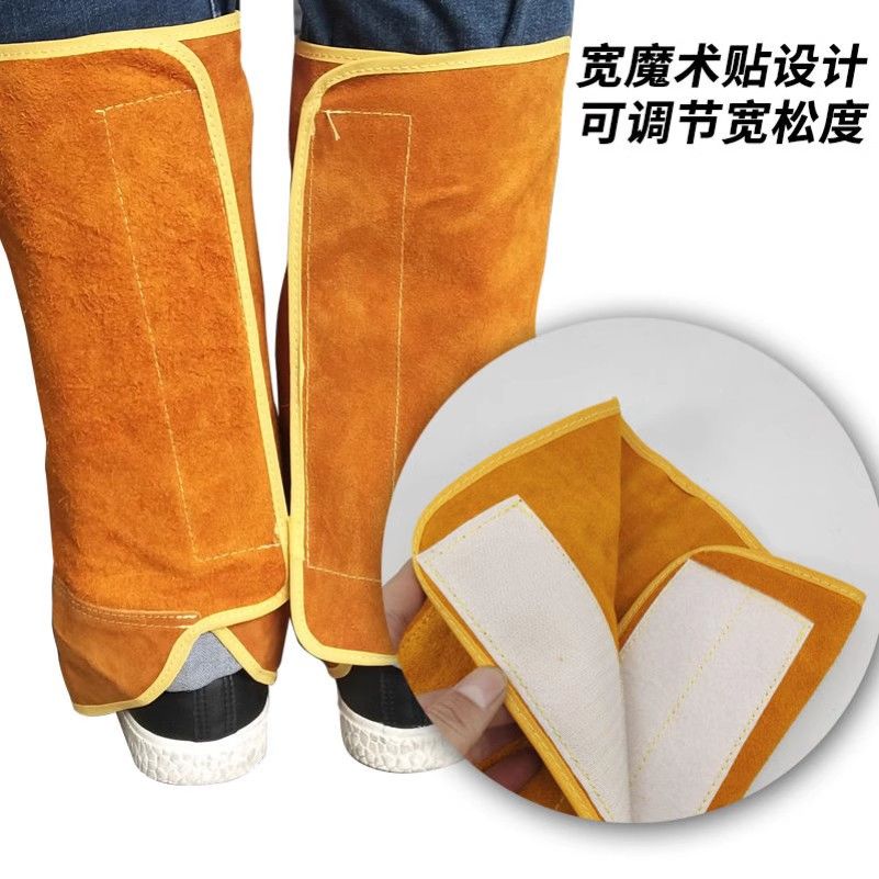 pure cowhide foot guards, welding foot guards, leg guards, welders' anti-scalding and anti-spark labor protection foot covers [5 pairs] 37 cm velcro foot covers