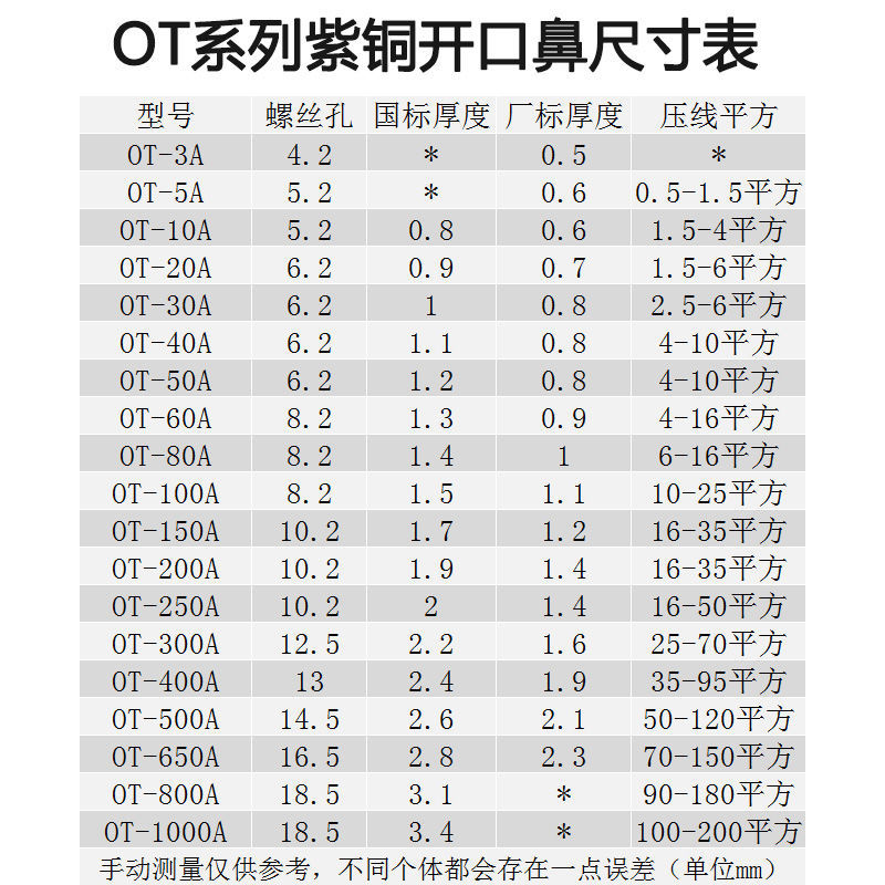 OT copper open nose copper nose national standard thickened wire nose cable terminal round wire ear clip copper connector factory standard affordable +OT-10A(200 only)