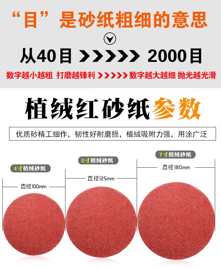 4inch 5 inch 7 inch 9 inch flocking sandpaper sheet air grinder polishing sandpaper sand leather self-adhesive brushed sheet round sandpaper sheet 4 inches 10 cm [10 sheets] +red sand 40 mesh