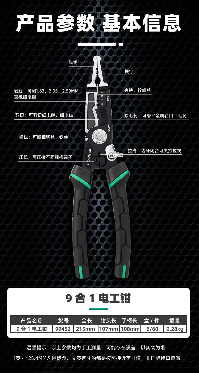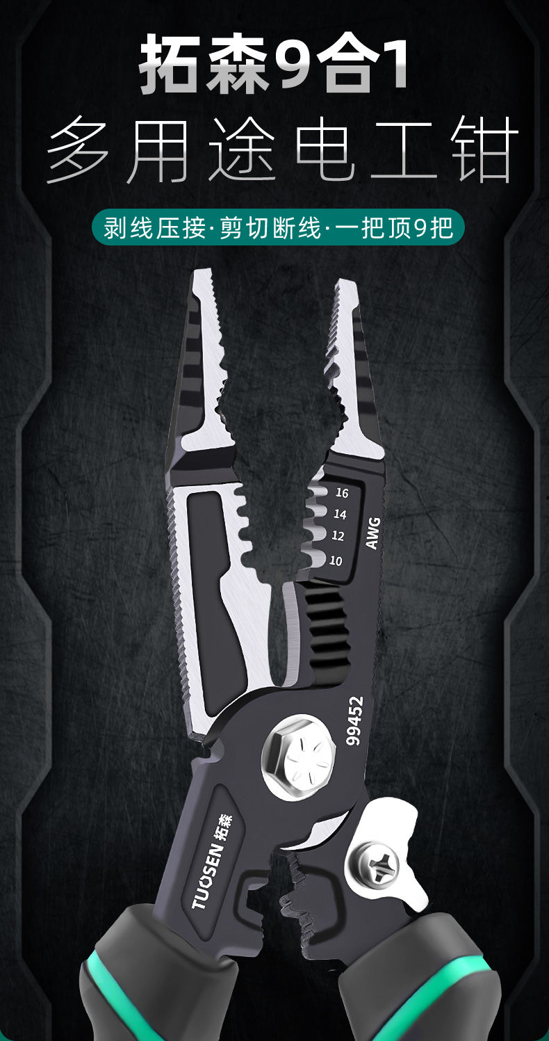 tuosen nine-in-one multi-function pliers electrician pliers crimping wire stripping pliers wire cutting pliers cable wire cutting pliers nine-in-one electrician pliers [electrician recommended]