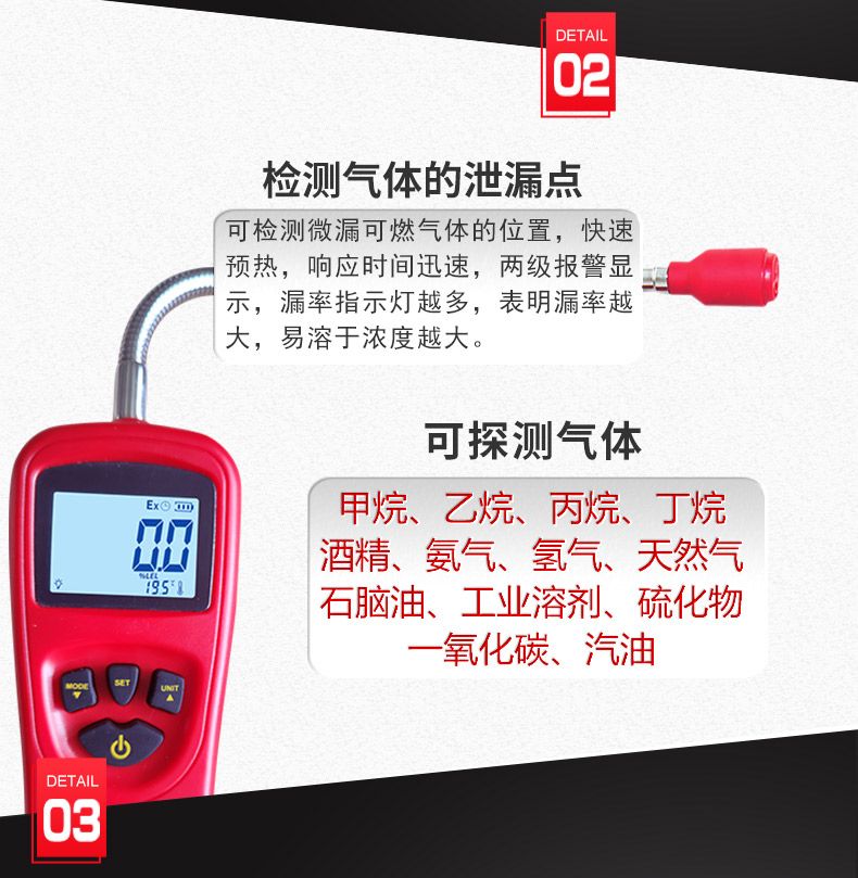 机器很灵敏,对着液化气管子测试立马测到并报警,真的很灵敏。