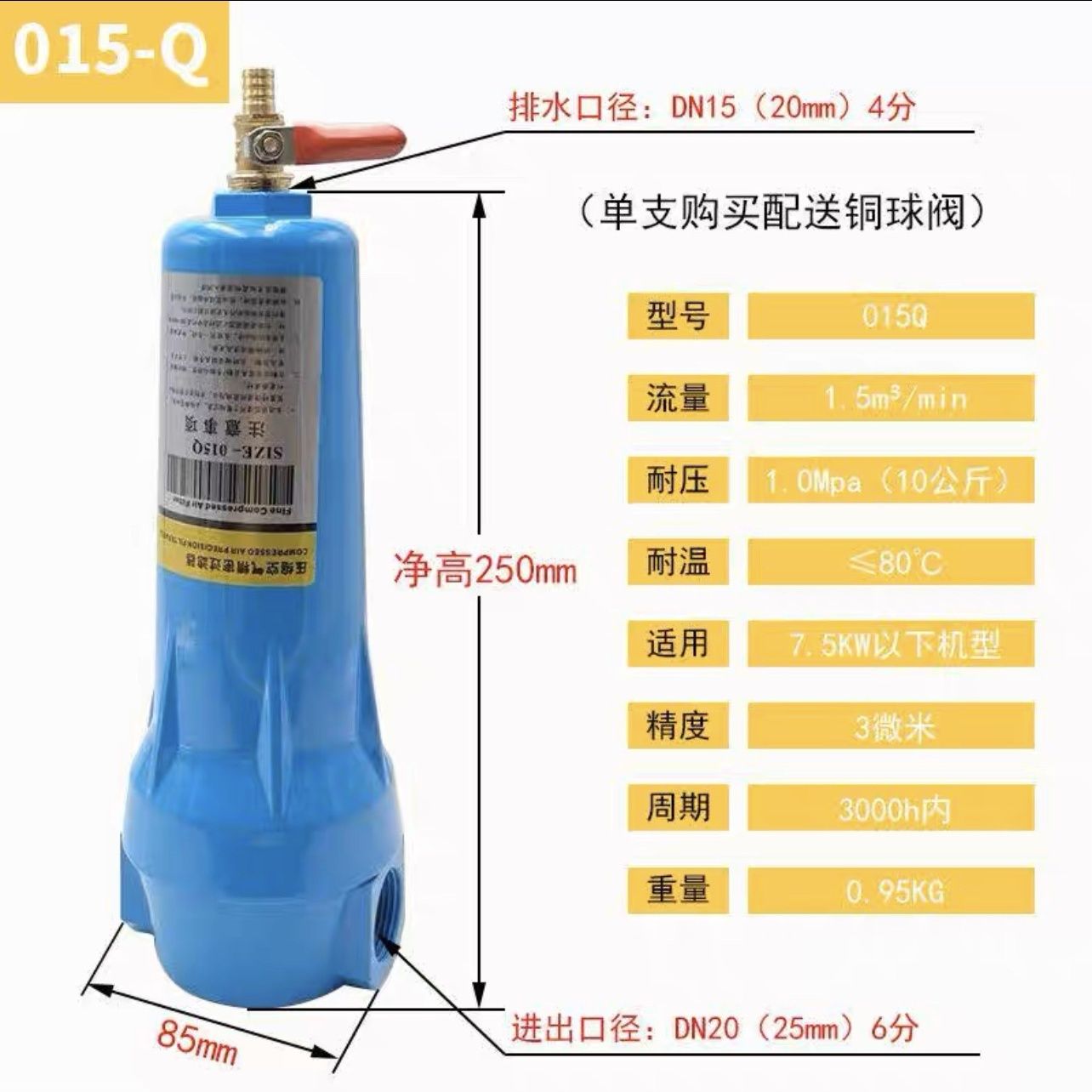 heros precision filter QPS compressed air filter cold dryer filter water and oil removal cold dryer 015 Q