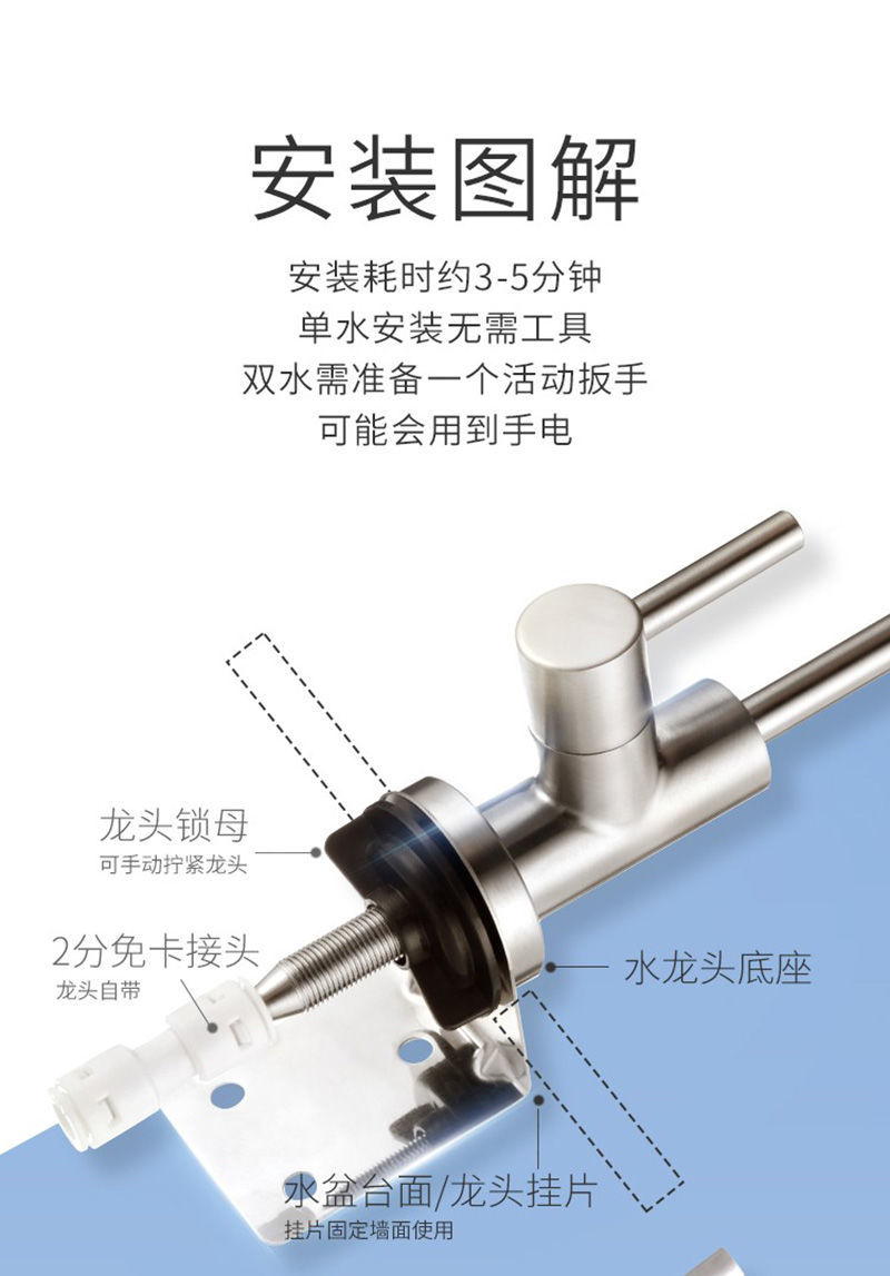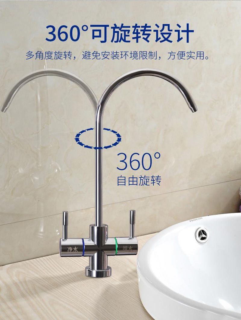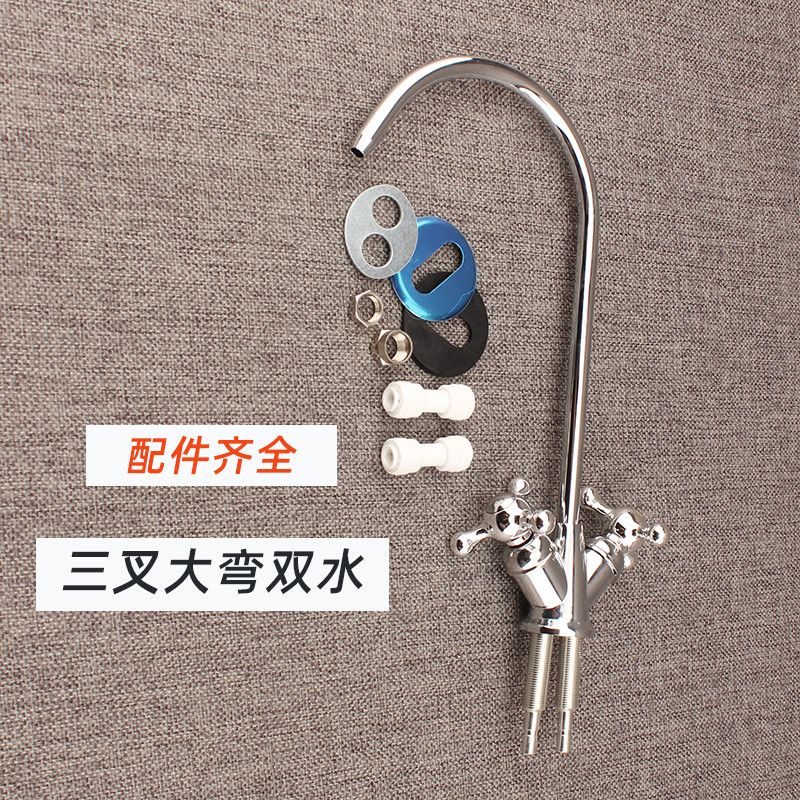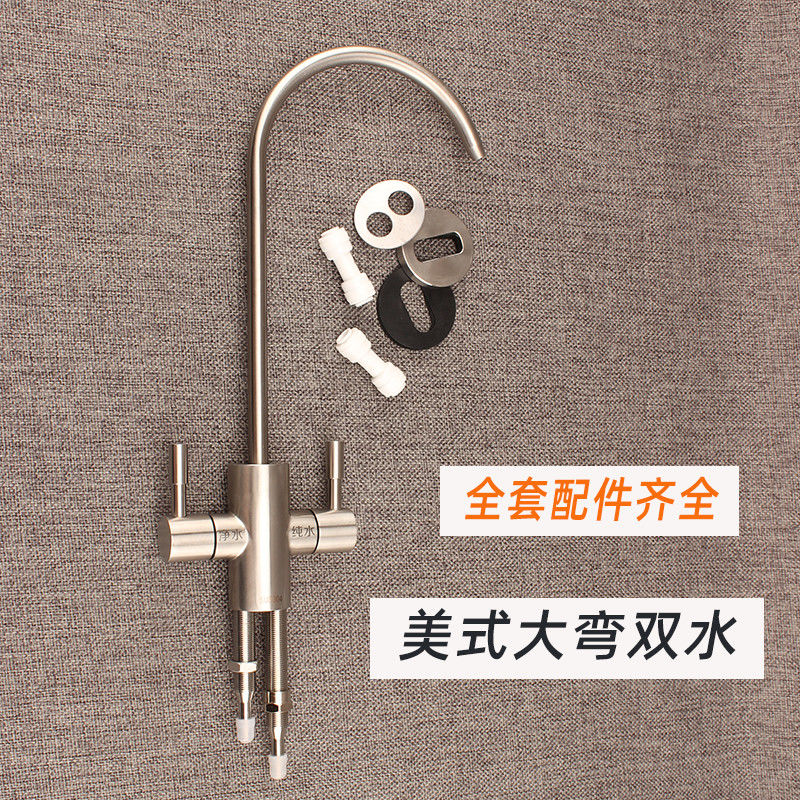 water purifier 2 points quick-connect gooseneck american 304 faucet large bend water purifier faucet two points direct drinking water machine alloy three-pronged single faucet +delivery connector