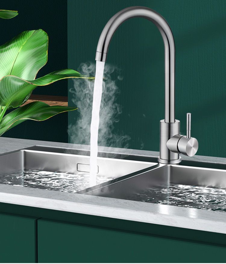 kitchen faucet hot and cold sink sink two-in-one all-copper single cold stainless steel vegetable basin faucet splash-proof without water inlet pipe +special price big bend [full copper] hot and cold type