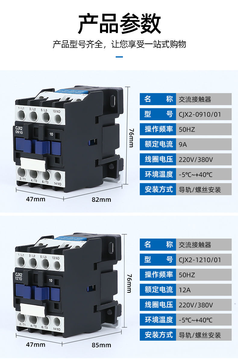 CJX2-1210交流接触器,加厚点推荐款,额定电流12A,辅助触头10:1常开点,也就是1.2A。交流接触器质量很好,物美价廉,物超所值。