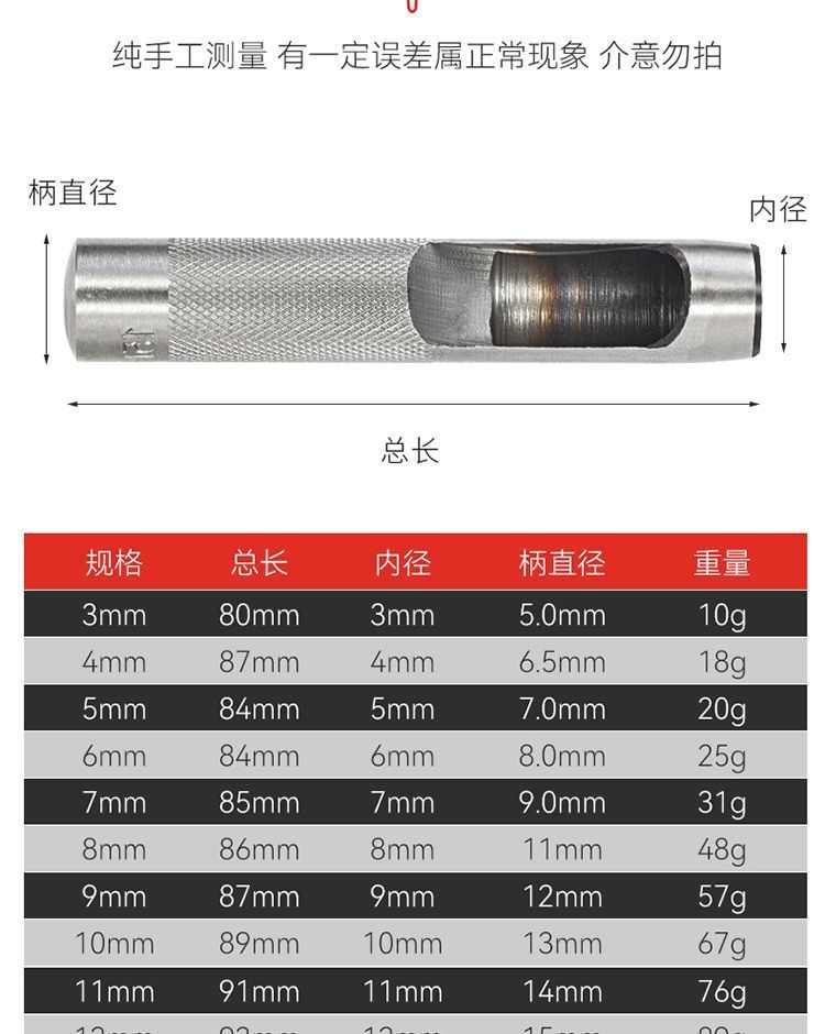 belt punch hole puncher small belt leather hollow punch round hole manual hole opener multifunctional cylindrical punch hot sale] belt punch 3-16 [12 pieces