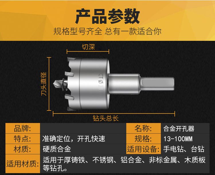 合金开孔器钻孔很好用。,规格齐全,尺寸很精准。质量很好。放心选购。