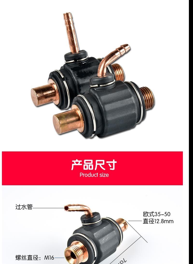 european 35-50 nut to quick-insert welding gun accessories gas to water argon arc welding machine air-cooled to water-cooled conversion joint european 35-50 water-cooled plug (bent rod)