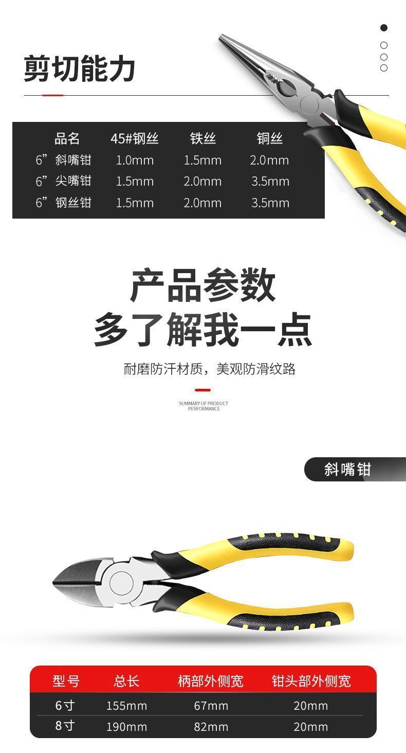 industrial-grade wire cutters, multi-function vise, high-carbon steel needle-nose pliers, 6-inch, 8-inch diagonal pliers, old-style 8-inch wire cutters [about 2 5 cm]