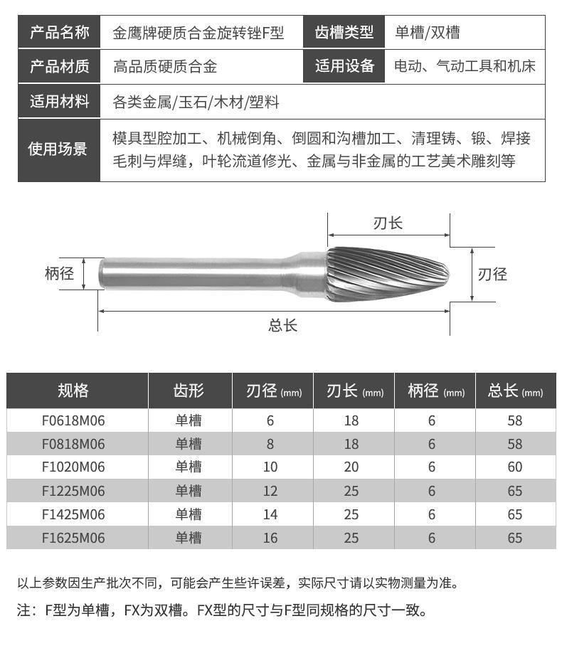 carbide rotary files /tungsten steel grinding head F6*6/F6*10/F6*12/F6*14/F1625M06 golden eagle F0618M06( blade diameter 6 mm single slot) +boutique