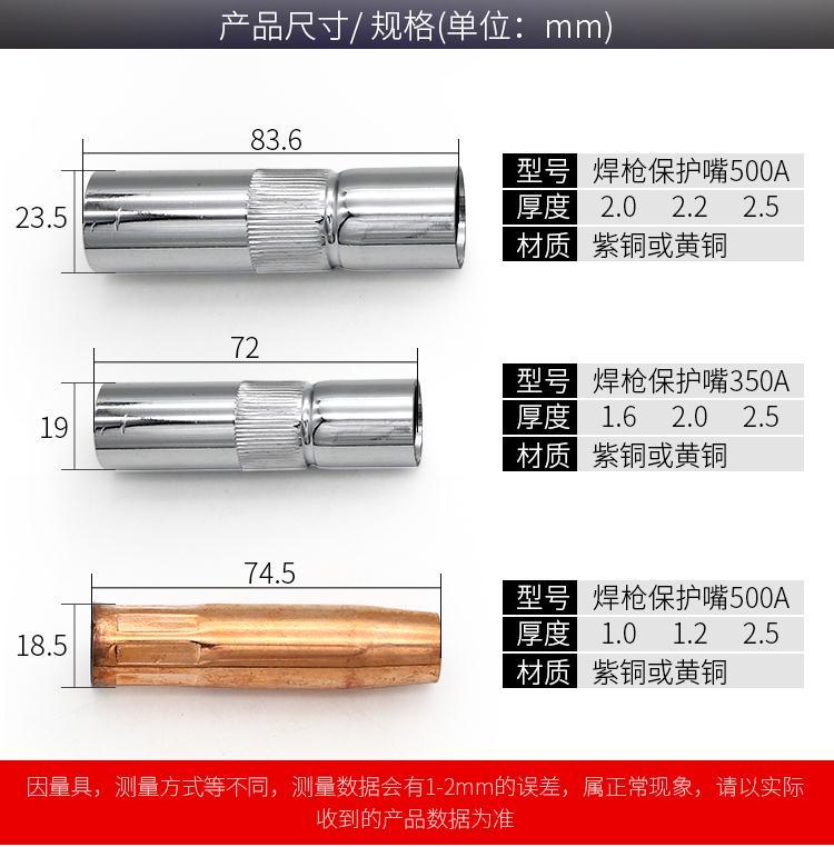 second protection welding machine accessories panasonic type 200 /350/500A gas shielded welding gun protection nozzle protection sleeve nozzle sleeve gun nozzle copper 15 AK protective cover 1.0 copper