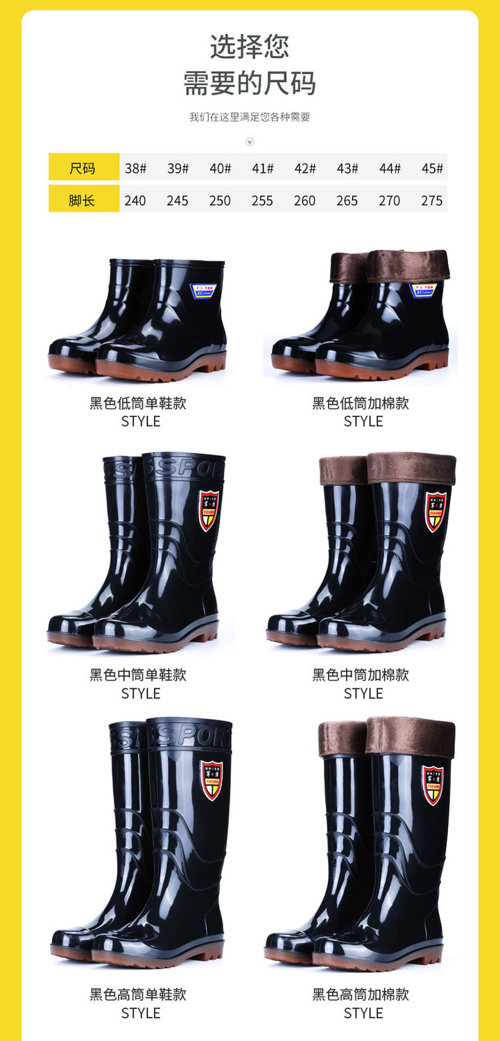 junjin cow tendon bottom waterproof rain boots men's high-top water shoes men's construction site rubber shoes rain boots short water boots kitchen shoes men's non-slip junjin cow tendon bottom-low tube [no cotton cover] 658 +38