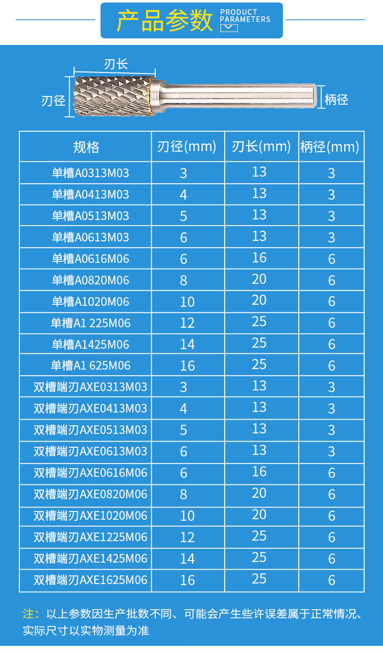 xingong carbide rotary file tungsten steel grinding head rotary file alloy grinding head steel grinding head hand drill grinding head A single slot A0820M6】