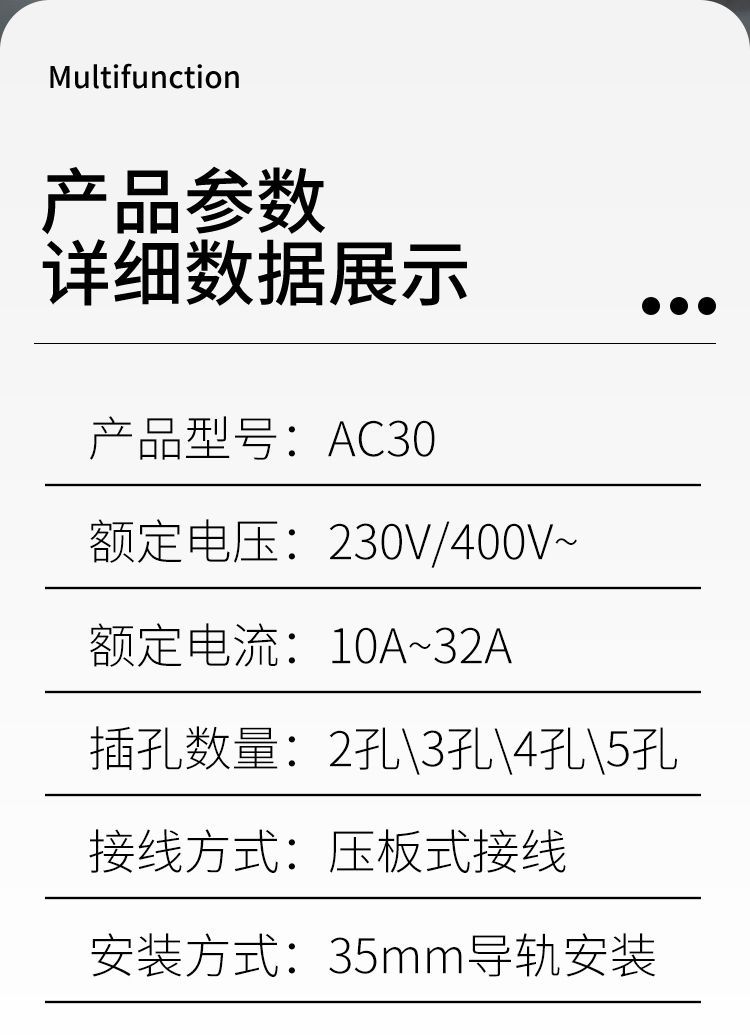 AC30 distribution box socket 10 a16a25a2 hole 3 plug 4 hole 5 hole modular socket rail type wiring board 2 hole 10-16 A
