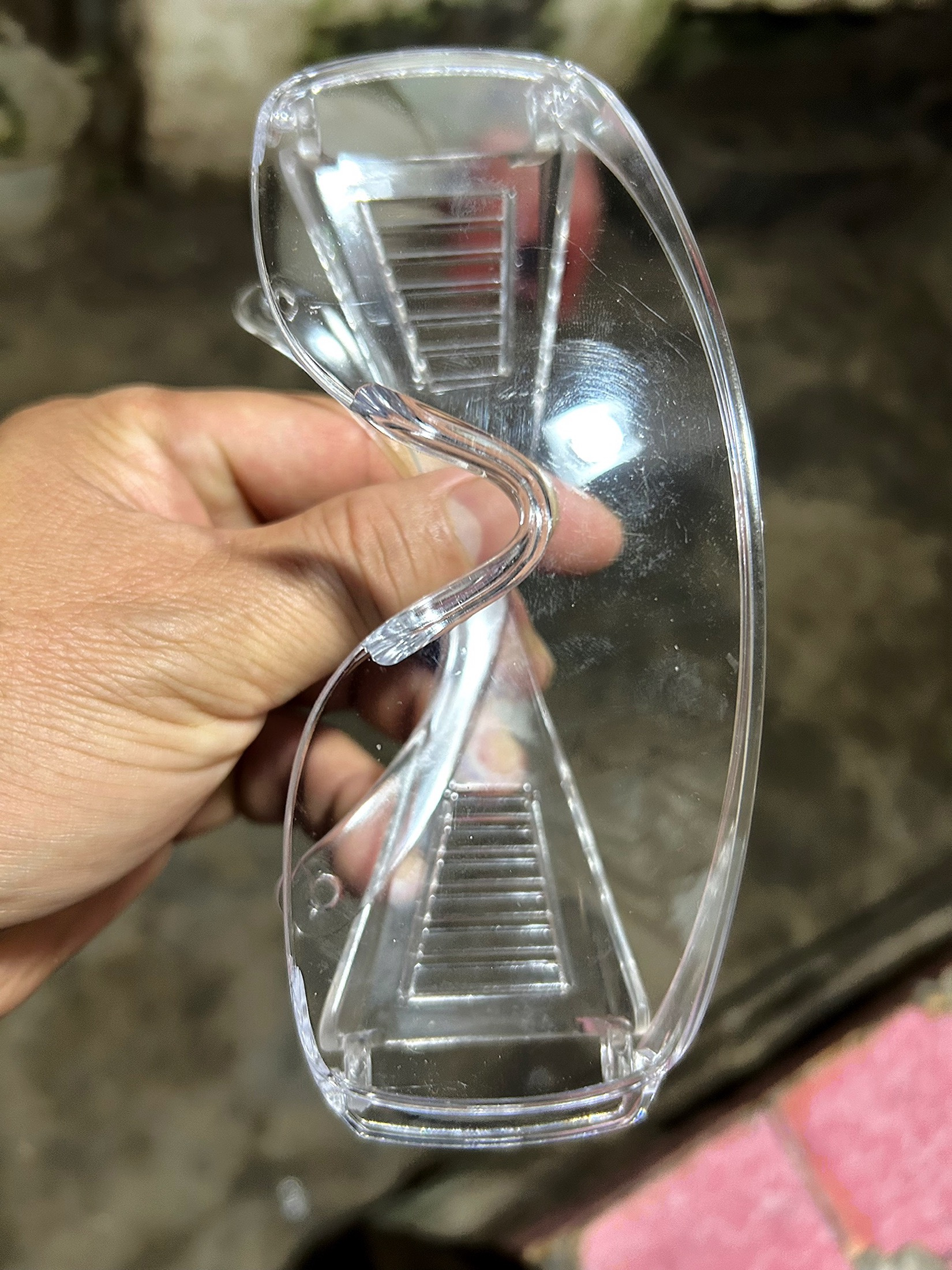 质量是胶的,不容易坏,很厚,戴着切割东西,再也不怕铁碎进入眼睛了,值得介绍工友购买
