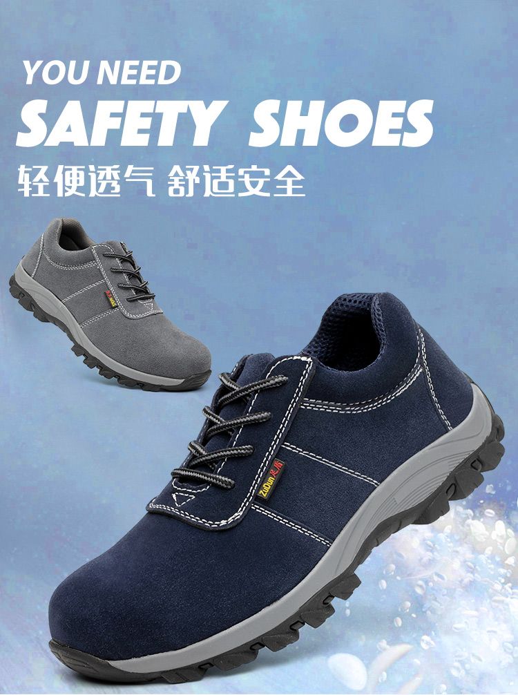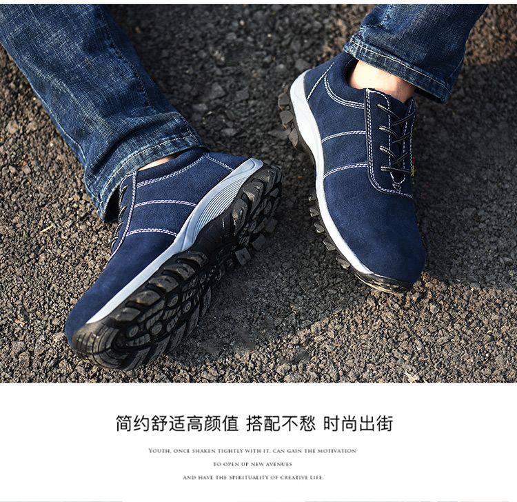 men's summer labor protection shoes steel toe caps anti-smash and anti-puncture cowhide breathable tendon bottom construction site welding protection work shoes 815 royal blue four seasons +36