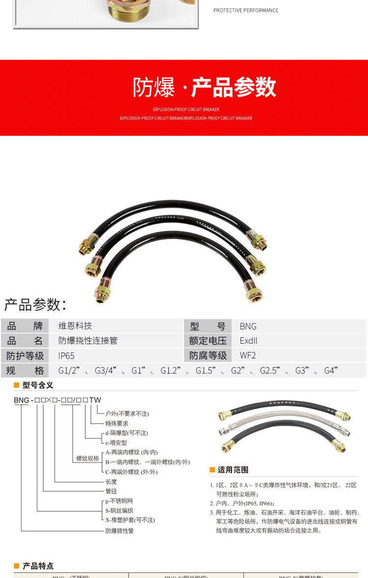 explosion-proof cable threading explosion-proof metal hose DN15/20/25/32/40/50BNG explosion-proof flexible connecting pipe 4 points DN15+300