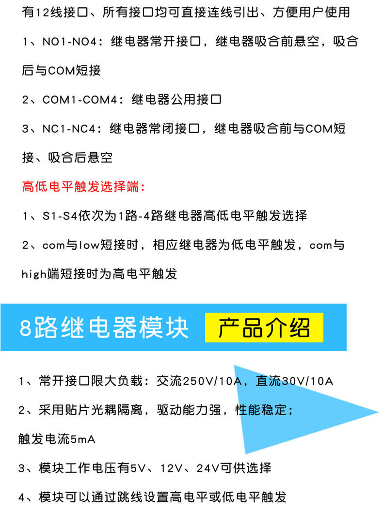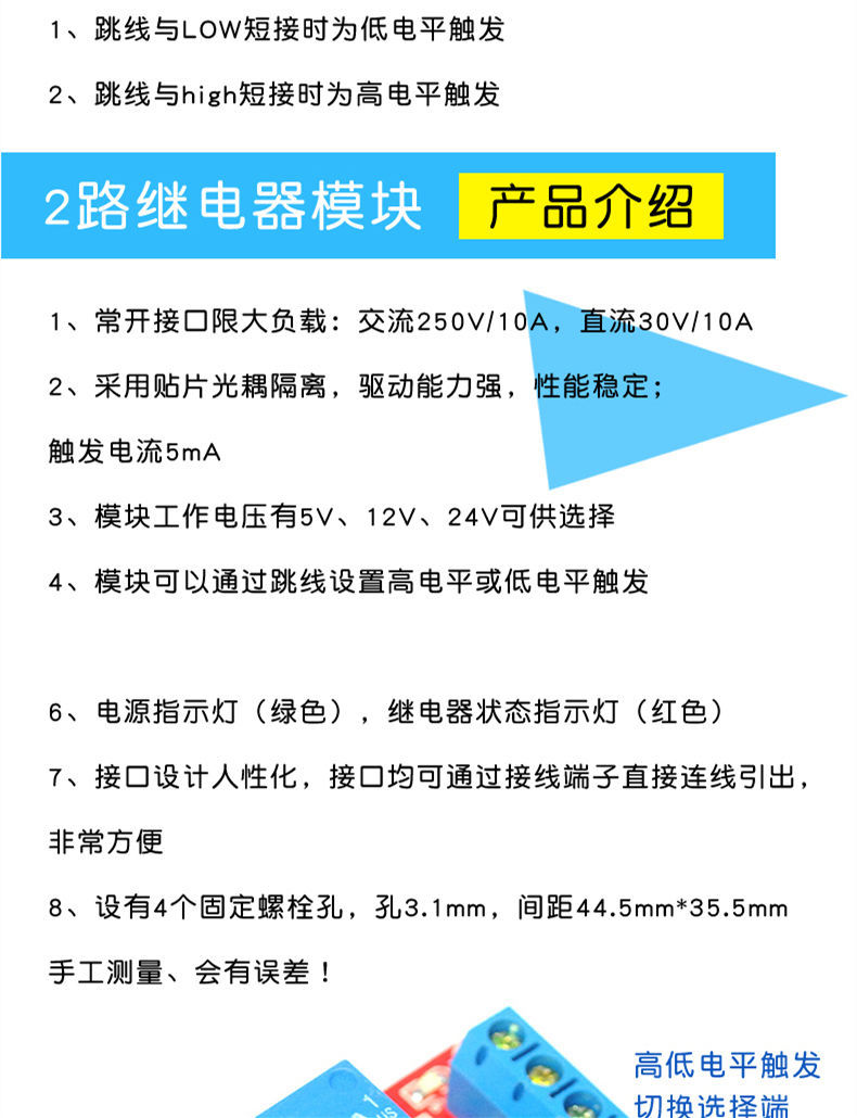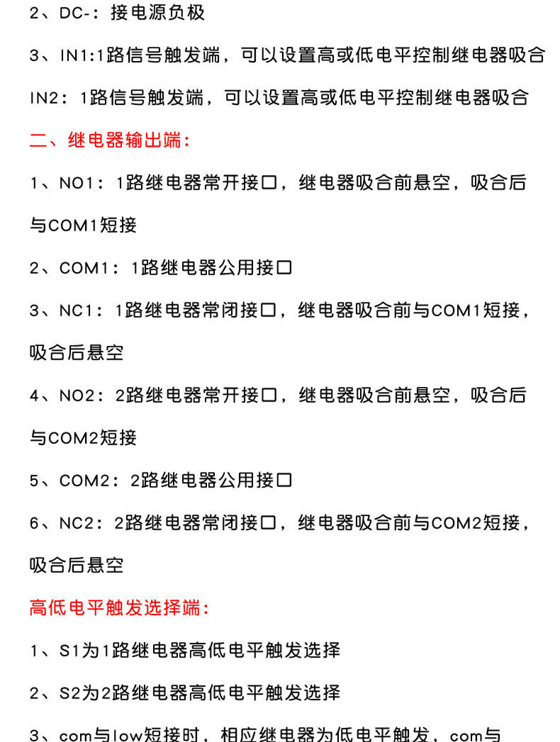说明书好难理解,没有图解,研究了好久,原来高低电平把H和com短接不是用导线把H和继电器触点的COM1短接,那个黄色的插头能拔出来啊,换个地方插就可以了,H和L中间也没有写一个com
