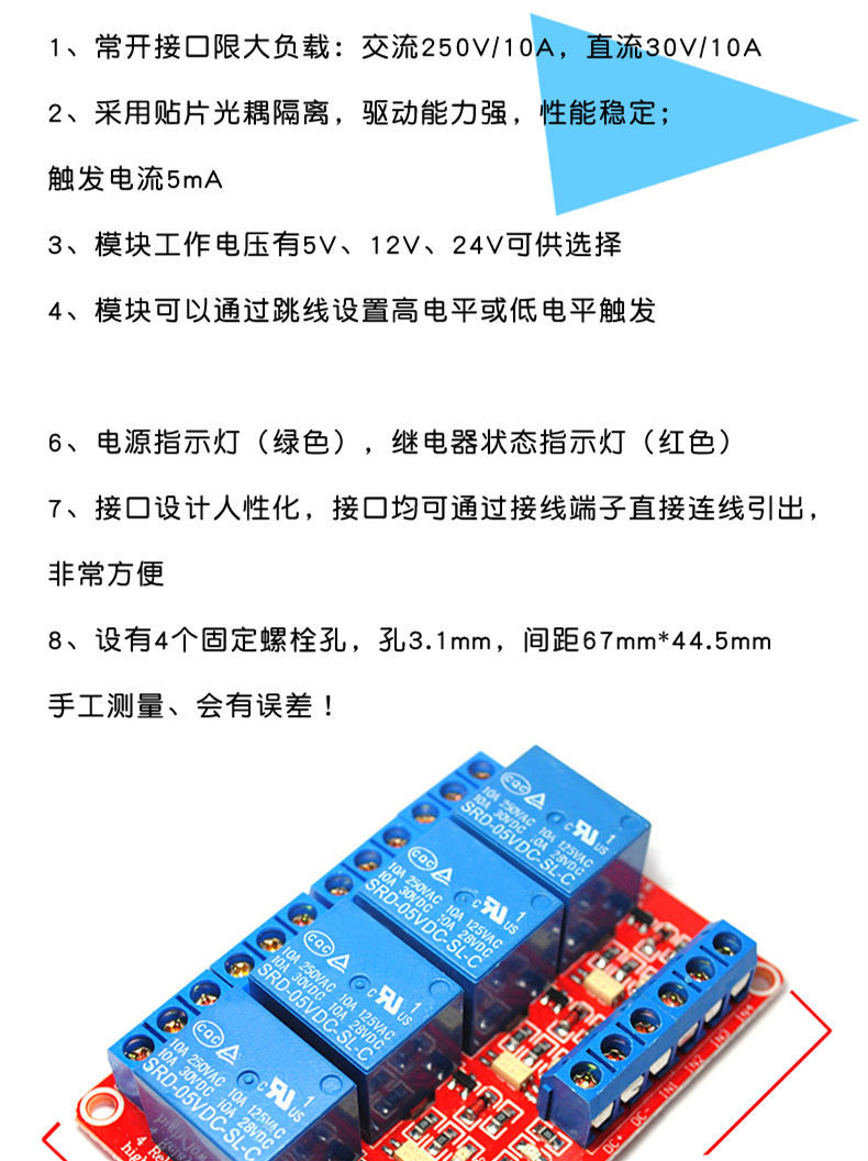 1 2 4 8road 5 V12V24V relay module with optocoupler isolation supports high and low level trigger development board 1-way relay module +5V【5 volt