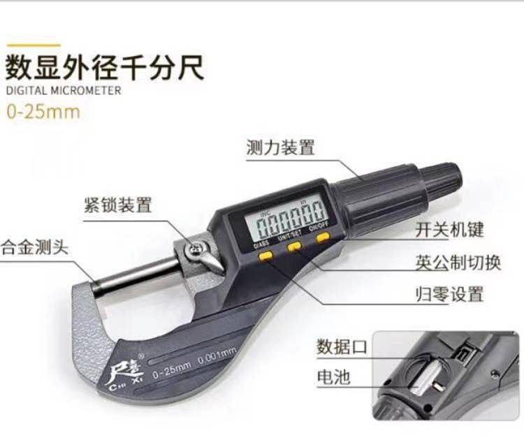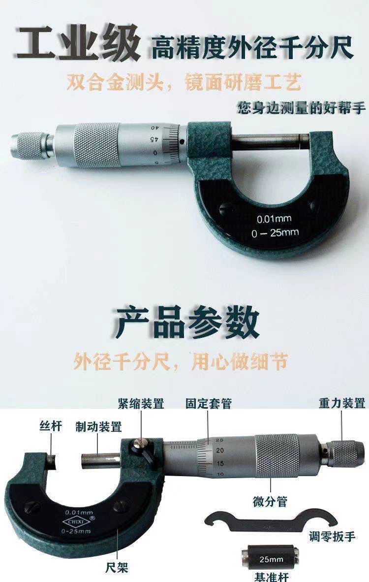 high precision chixi brand outside diameter micrometer 0-25-50-75-100 spiral micrometer micrometer economic model 0-25 MM