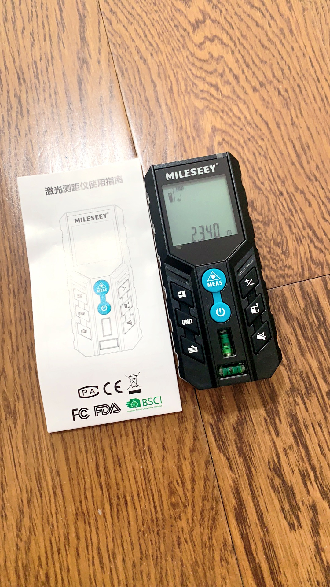收到了,拆开试一下,对着地砖线往上往前测量超准,语音说测量结果,非常好!如何测面积等复杂活还在学习中…