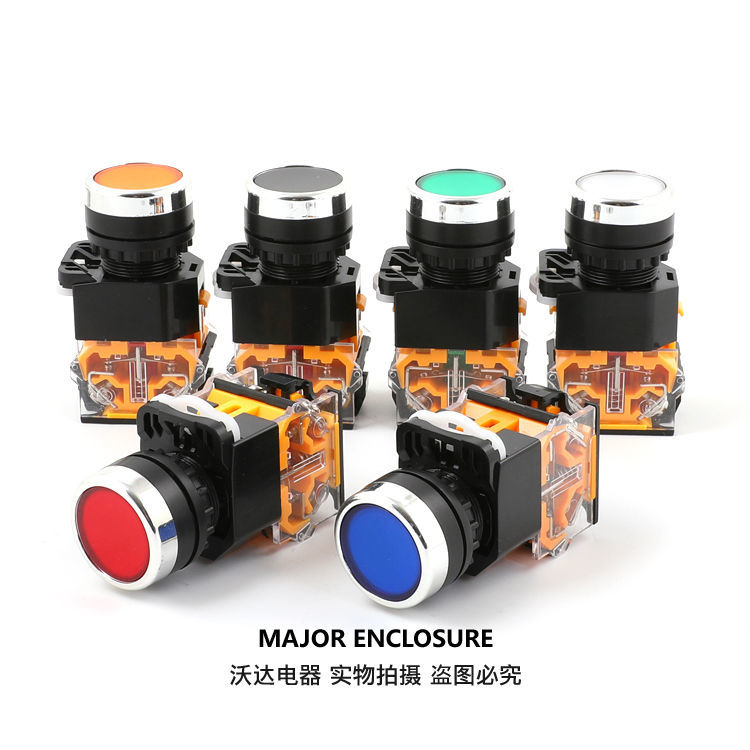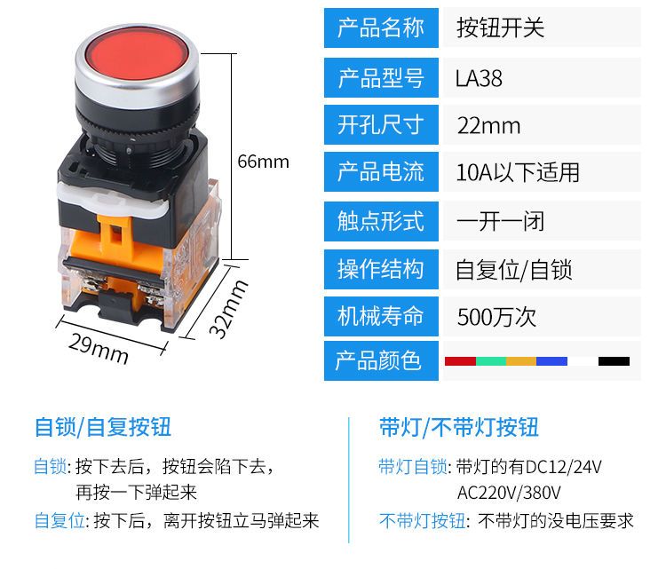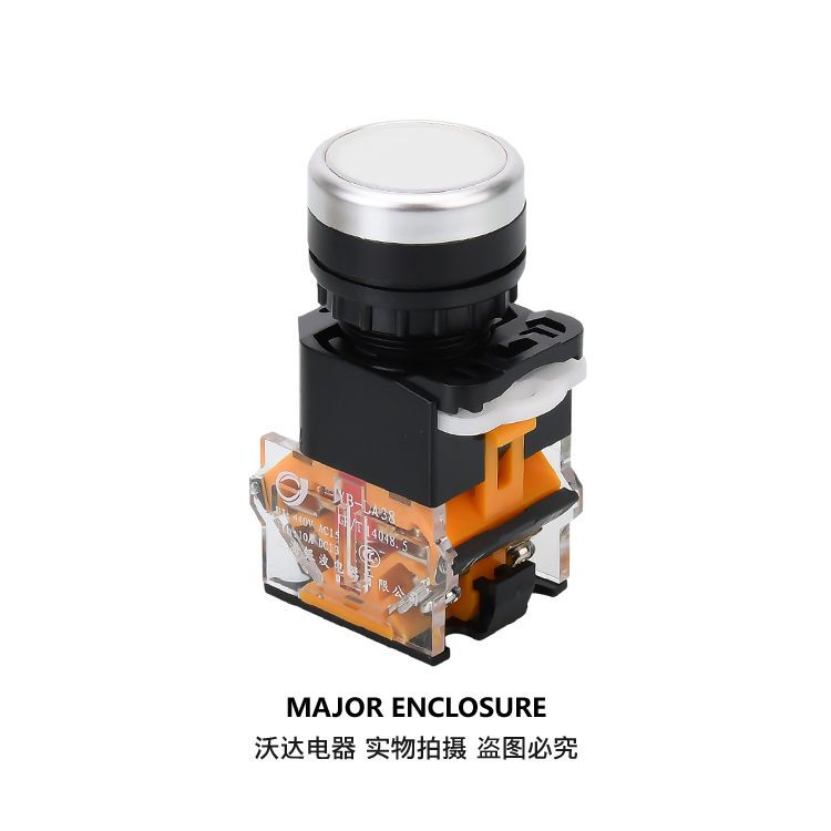push button switch self-reset la38-11Bn self-locking one open one closed start stop round inching switch button self-resetting (inching) silver dot +red (one open, one closed)