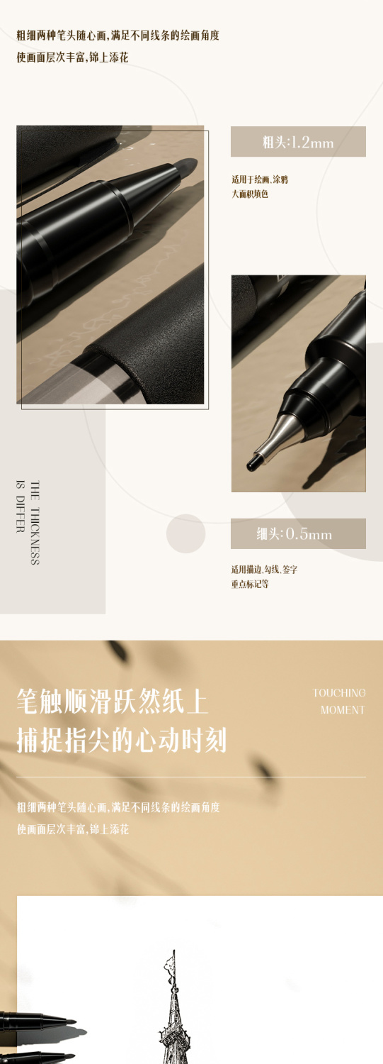 得力的这个笔还是很好用的不断墨写起来很流畅有一头粗的一头细的粗的那头刚好适合我们医学生来做一些明显的标记细的那头也可以用来写写其他东西很好用质量很好用起来很顺滑