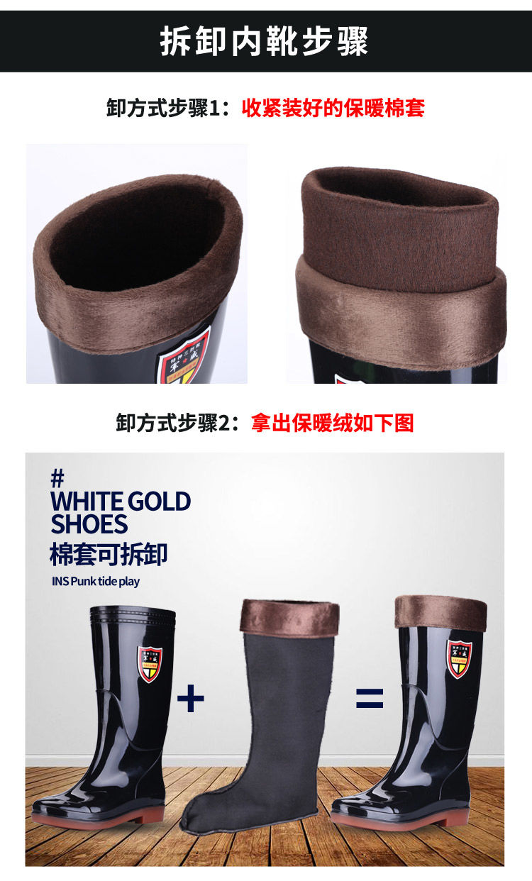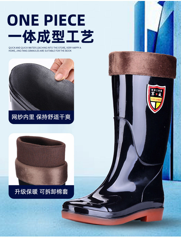 雨鞋质量非常好,很合脚,橡胶材质适中,不软不硬,平时自己洗车或者下地做活再合适不过,在家里做清洁,拖地穿也非常棒。