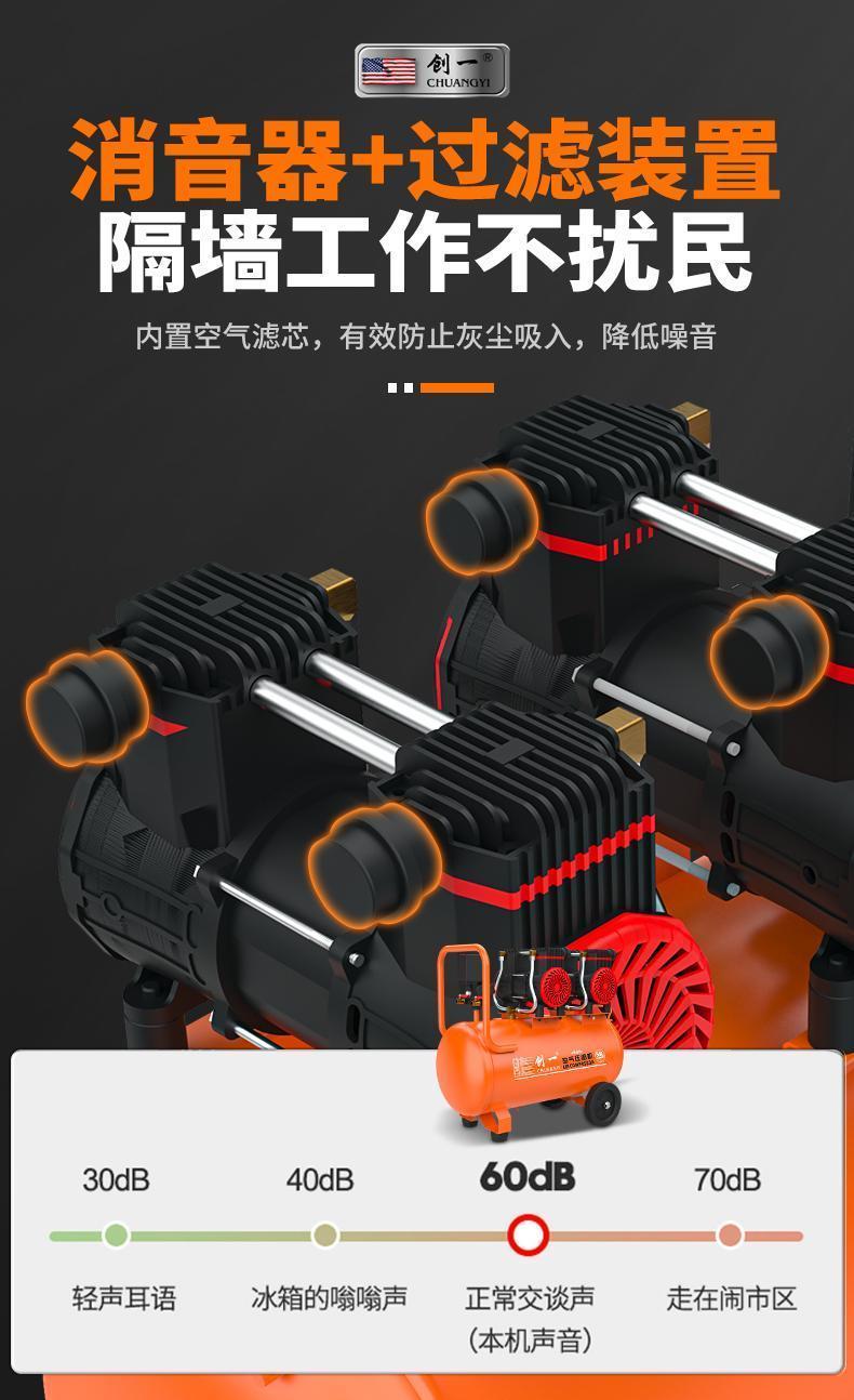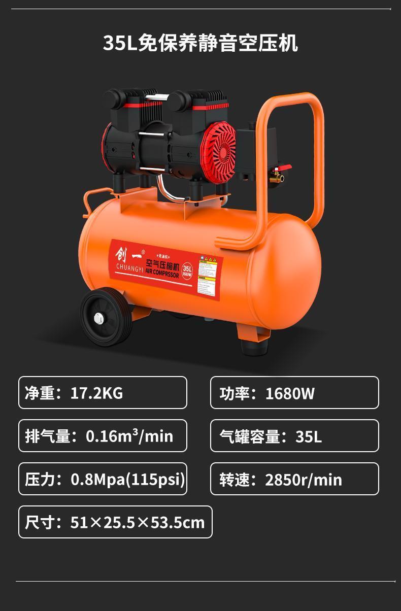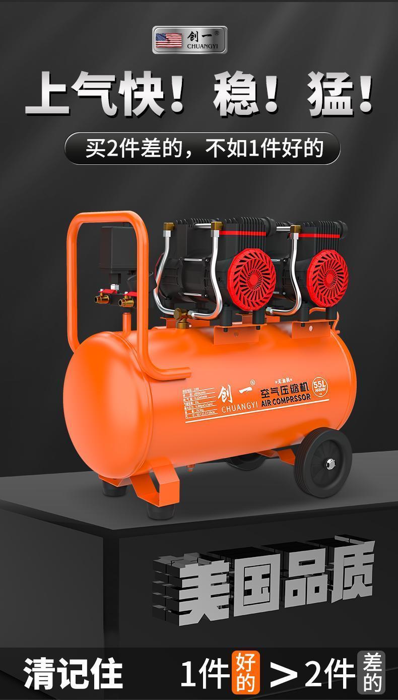 chuangyi air compressor air pump air compressor oil-free silent inflator high-pressure air pump woodworking auto repair spray paint [four-cylinder air intake high-pressure intelligent] oil-free and low noise +new intelligent pressure king 15 L【 bare metal
