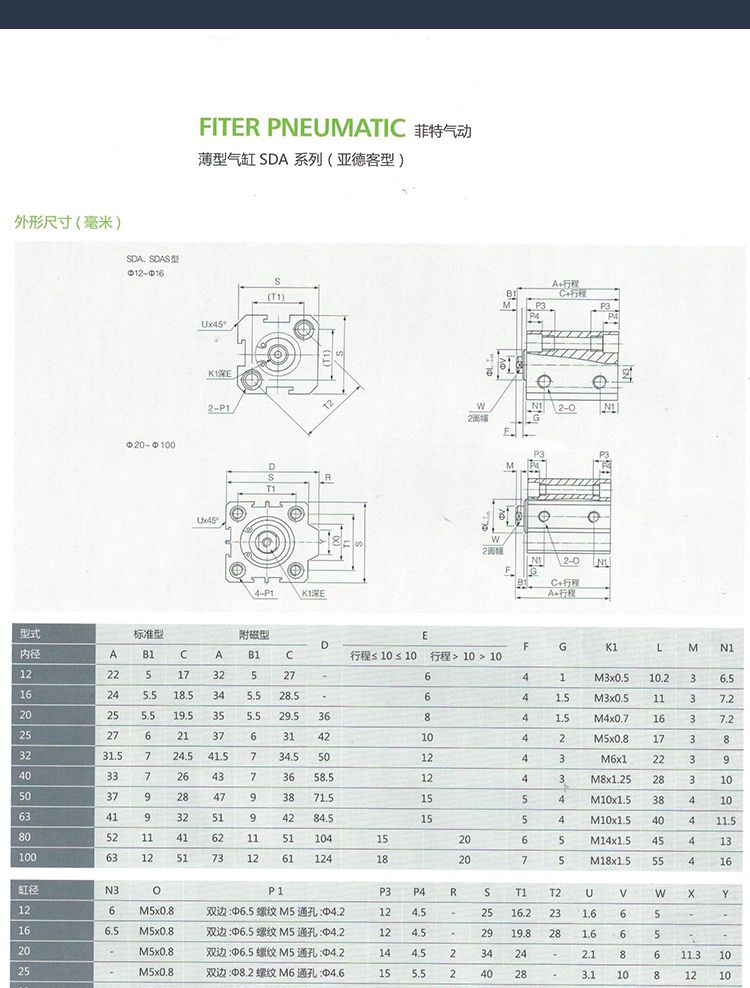 pneumatic small type SDA thin type cylinder large thrust 100 cylinder diameter CQ2B type ACQ type 25*20ultra-thin square type adjustable SDA 12+itinerary 5 MM