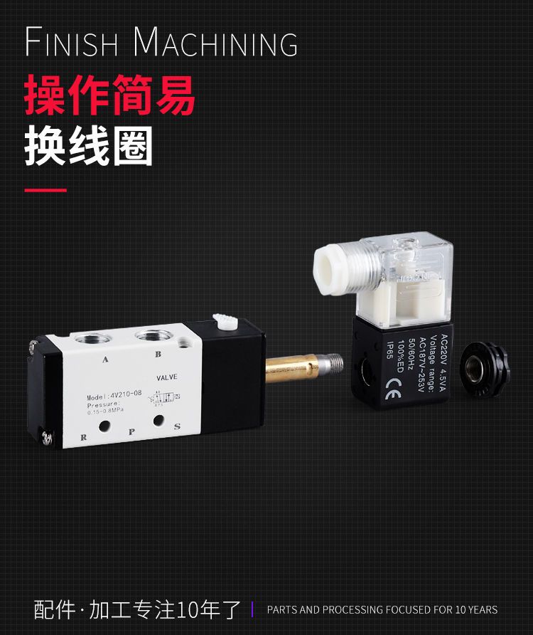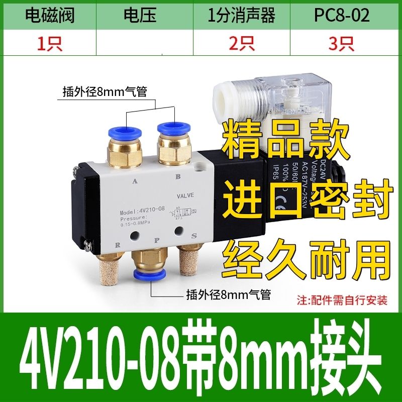 4V210-08 pneumatic solenoid valve universal two-position five-way pneumatic reversing valve control valve air compressor voltage: AC220V+boutique +8MM connector muffler set