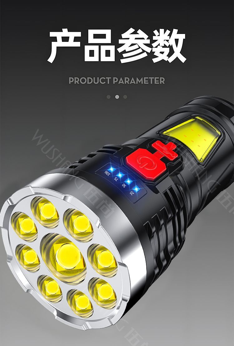 imported ten-core high-intensity flashlight led side light outdoor portable multifunctional lighting light long-range light violent car light strong light flashlight [ten-year warranty] +S class /super charging model [nine lights] #standby 999 days