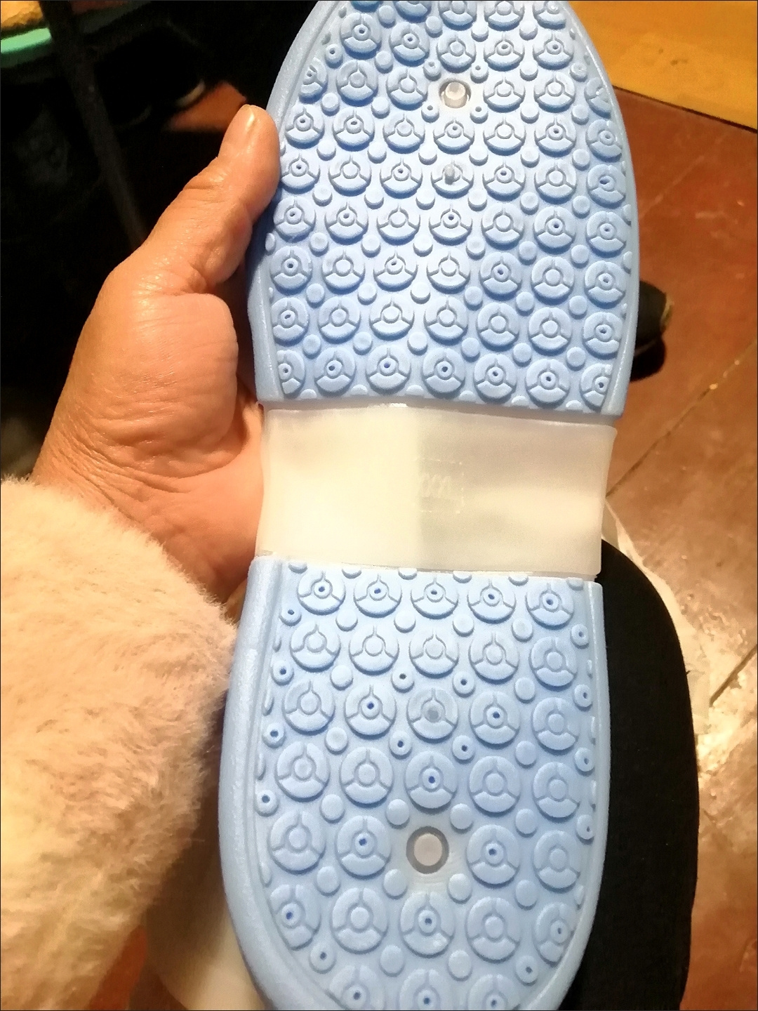 鞋底是软的,尺码标准,鞋套很厚实,摸起来软软的