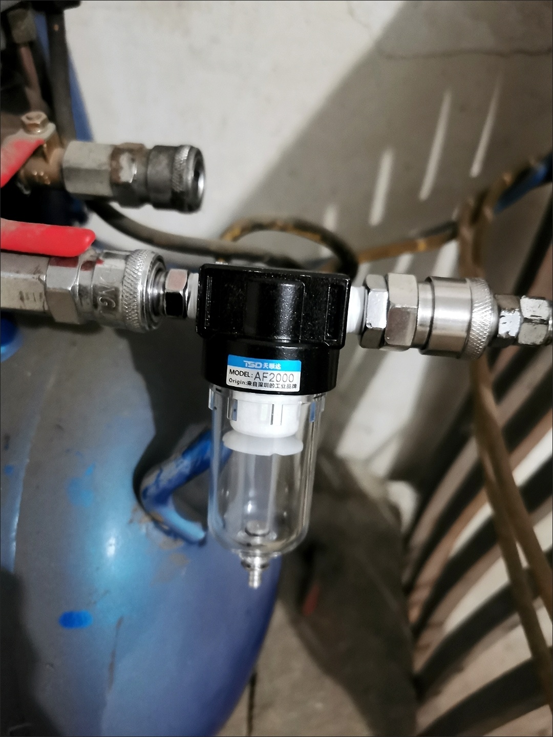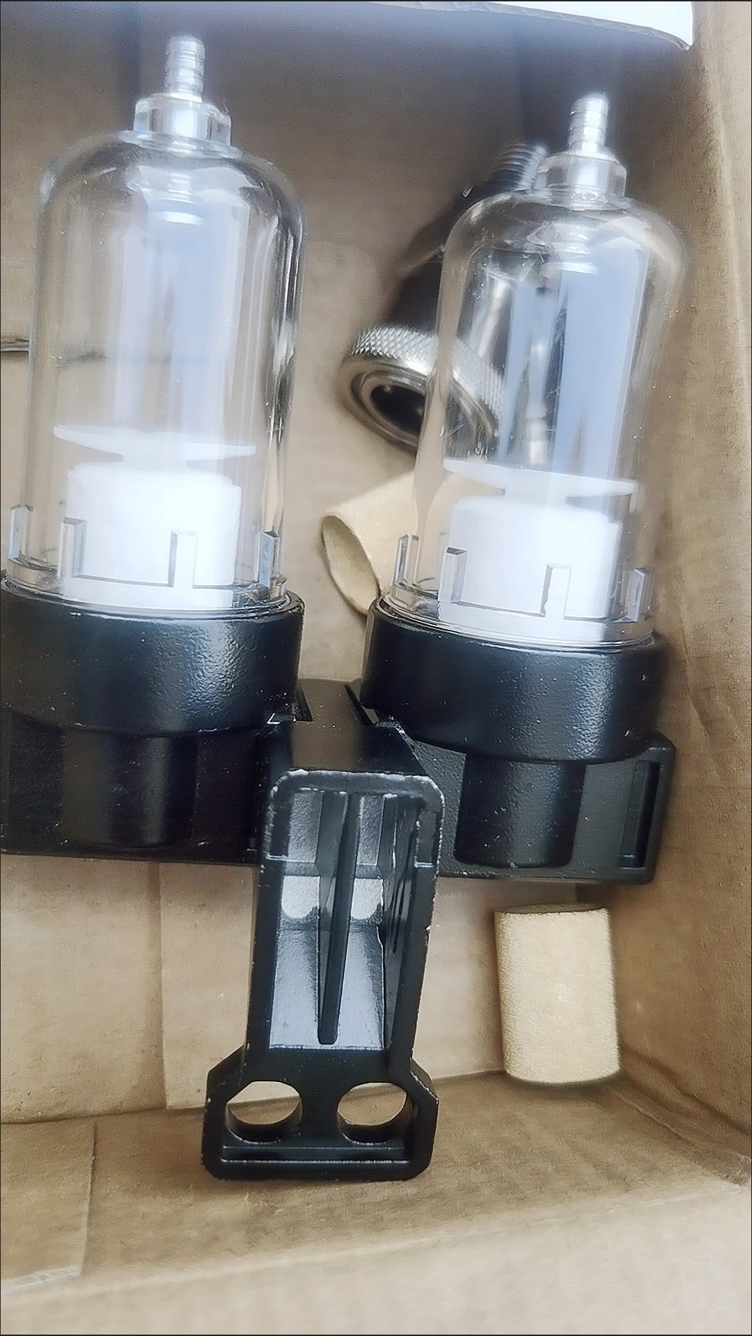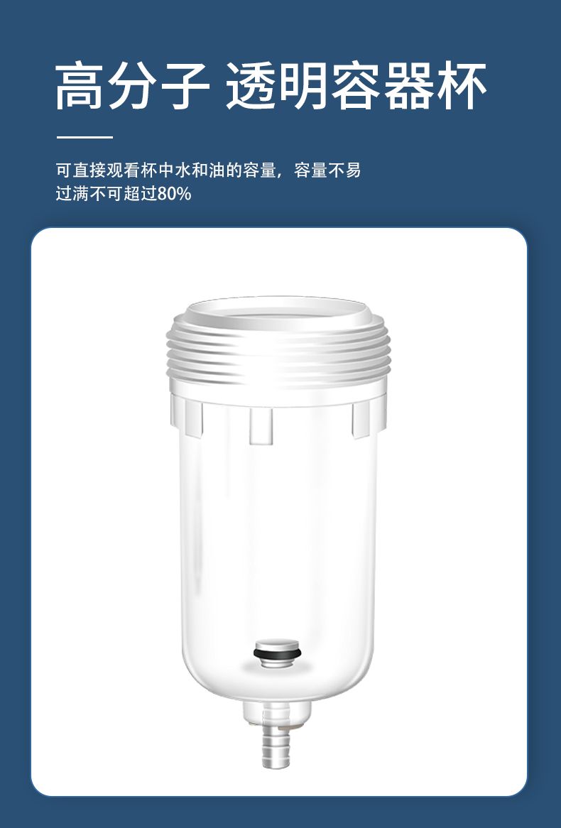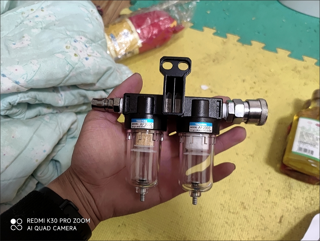 油水分离器收到了,挺好的,是双重过滤,普遍卖的都是单纯过滤,这个挺好的,原本是双棉滤芯儿,我自己给换成了一棉一铜,这样更耐用一些,先用铜过滤,这样可以增长一下棉滤芯的寿命,价格不贵,好评,推荐购买。
